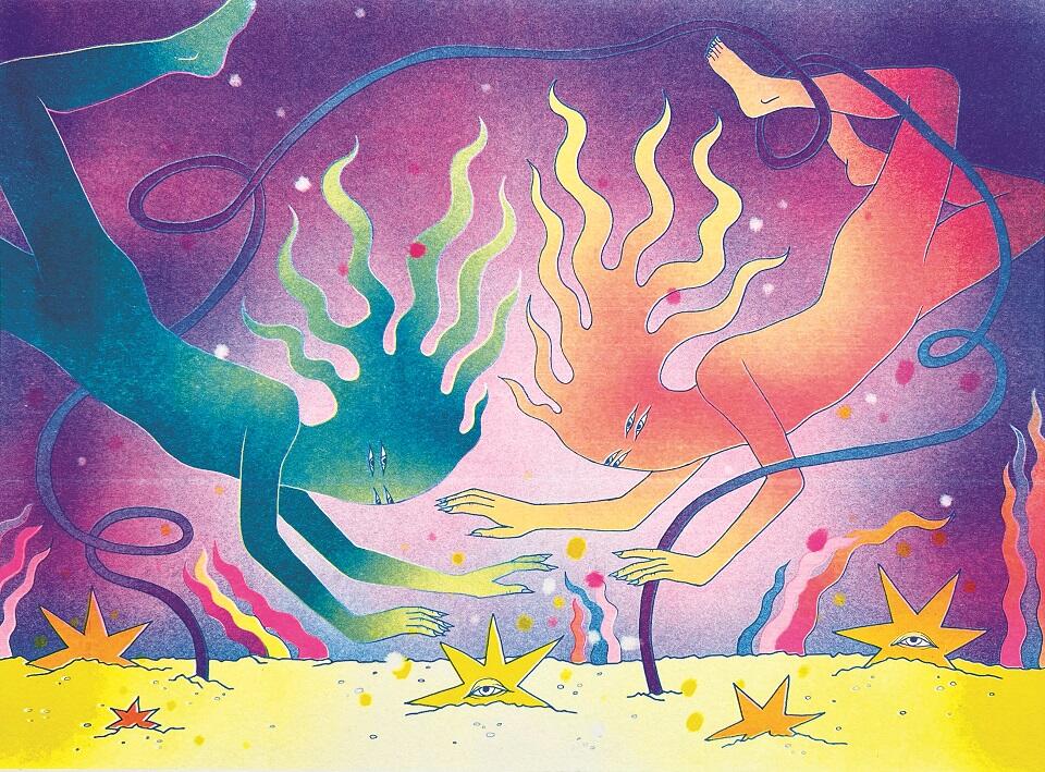 – Naujausius savo kūrinius netrukus pristatysi Šiaulių meno erdvėje „Garažas“. Svarbu paminėti, kad čia eksponuojami Tavo darbai atlikti risografijos technika. Papasakok apie tai daugiau – kodėl būtent risografija geriausiai perteikia parodos centre atsidūrusias šiuolaikinių ritualų, raganystės temas? Kuo ši technika pranašesnė už kitas, anksčiau Tavo išmėgintas?