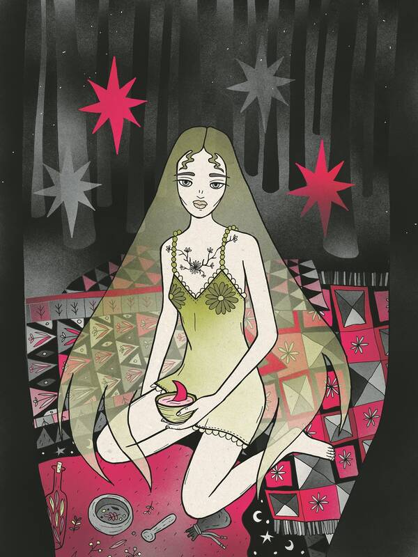 – Risografijos spauda susidomėjau dėl jos ryškių ir unikalių spalvų – nuo neoninių, fluorescencinių iki nešvarių pastelinių ar net sidabrinių ir auksinių. Tokių atspalvių neįmanoma išgauti jokiais kitais standartiniais spaudos būdais, nei skaitmenine, nei ofsetine spauda. Dėl specifinio risografo spausdinimo būdo, kai spalvos sluoksniuojamos, kiekvienas spaudinys tampa pusiau unikalus – dėl nenuspėjamų tekstūrų ir persidengiančių atspalvių. Atidavus kūrinį spaudai, smalsu išvysti, kaip atrodys visada netikėtas galutinis rezultatas. Įdomu ir tai, kad risografijos techniką menininkai pasitelkė kaip vizualinę priešpriešą komerciniam menui ir tokio pobūdžio žurnalams. Ši spauda tiek savo estetika, tiek technologijos kaštais suteikė laisvę kurti nepriklausomai ir leisti eksperimentinius leidinius – zinus. Risografija galiausiai tapo ne tik įprastos spaudos alternatyva, bet ir kultūriniu judėjimu. Su šia technika artimiau susipažinau ir ją išbandžiau šaunioje risografijos spaustuvėje Kaune „Hands on Press“. Tuomet supratau, kad tokiai ryškiai, principingai ir atsikratančiai stereotipų, taisyklių būtybei kaip ragana atskleisti risografija tobulai tinka.
