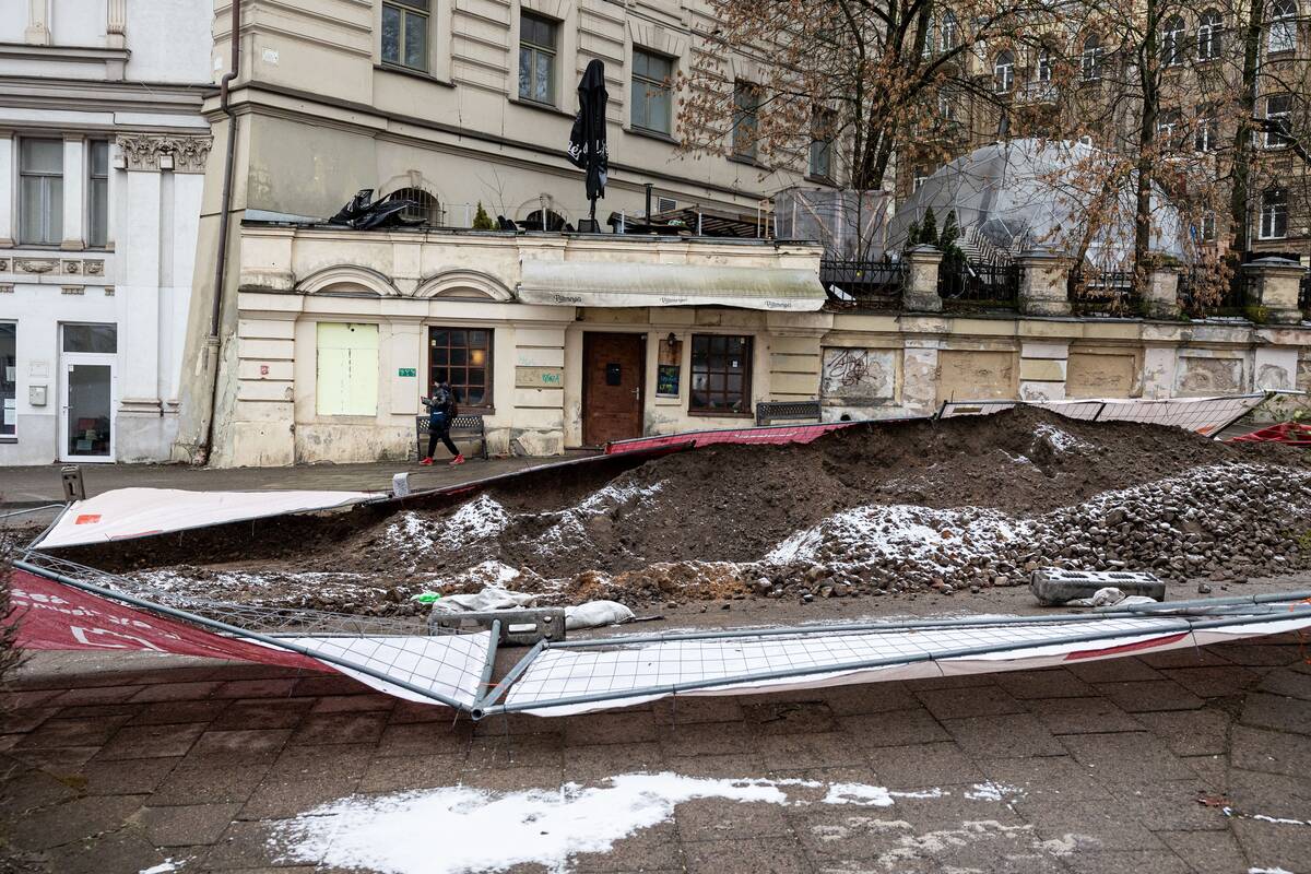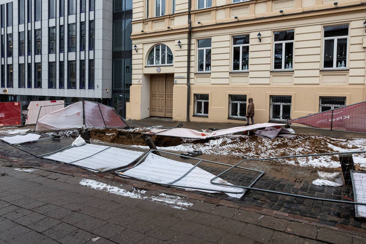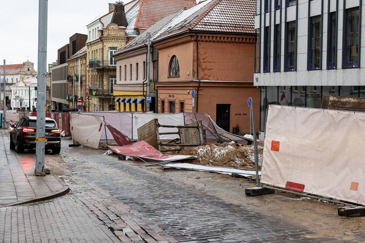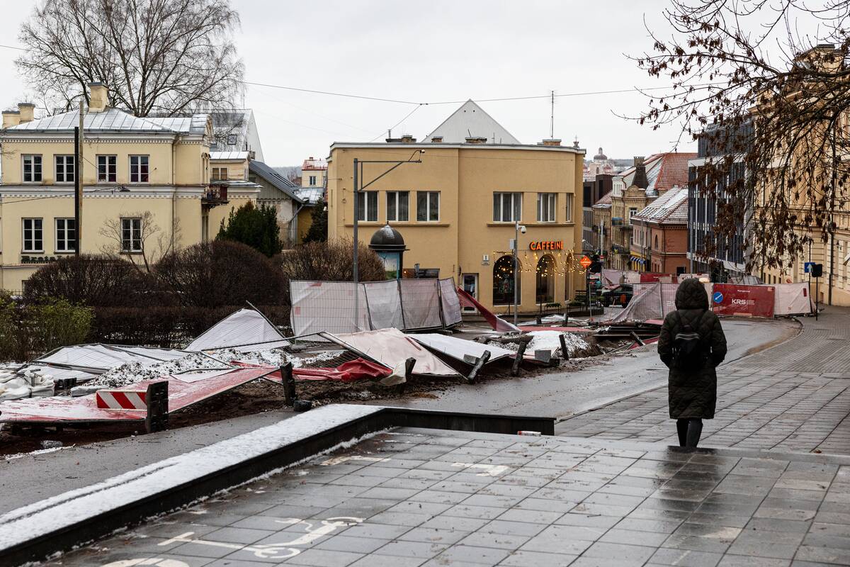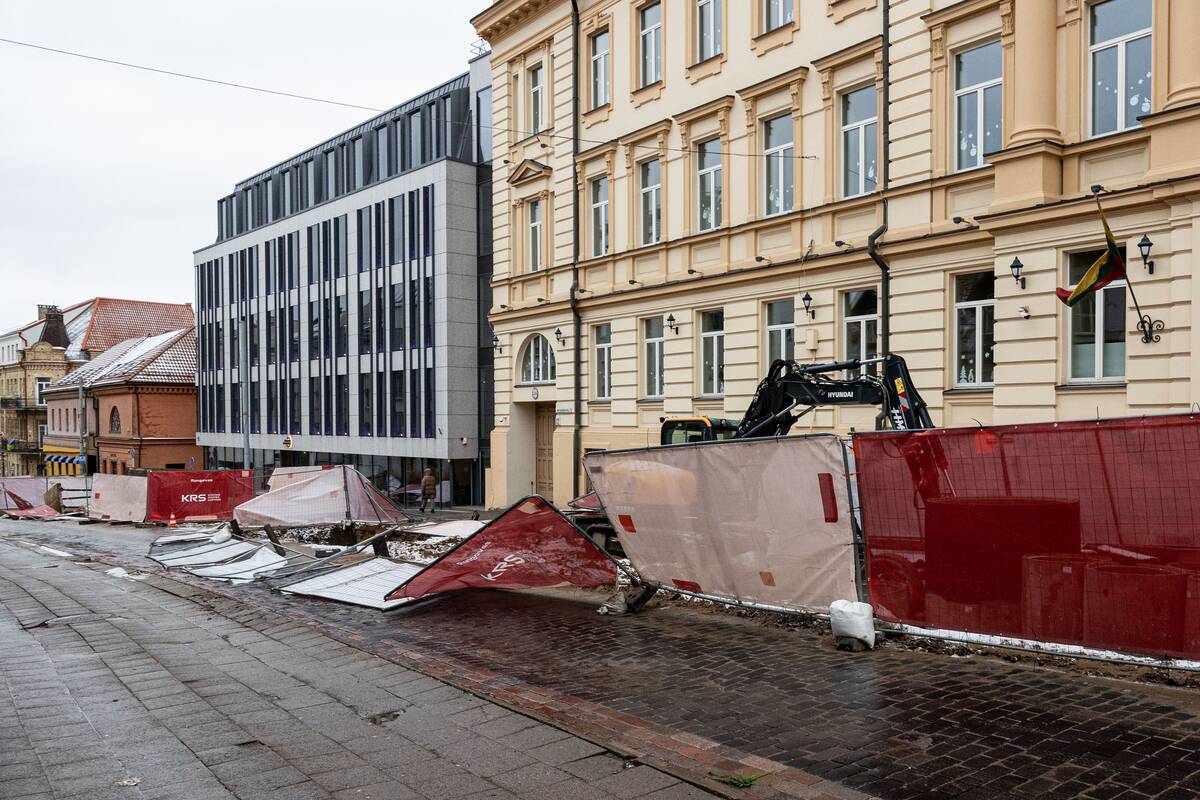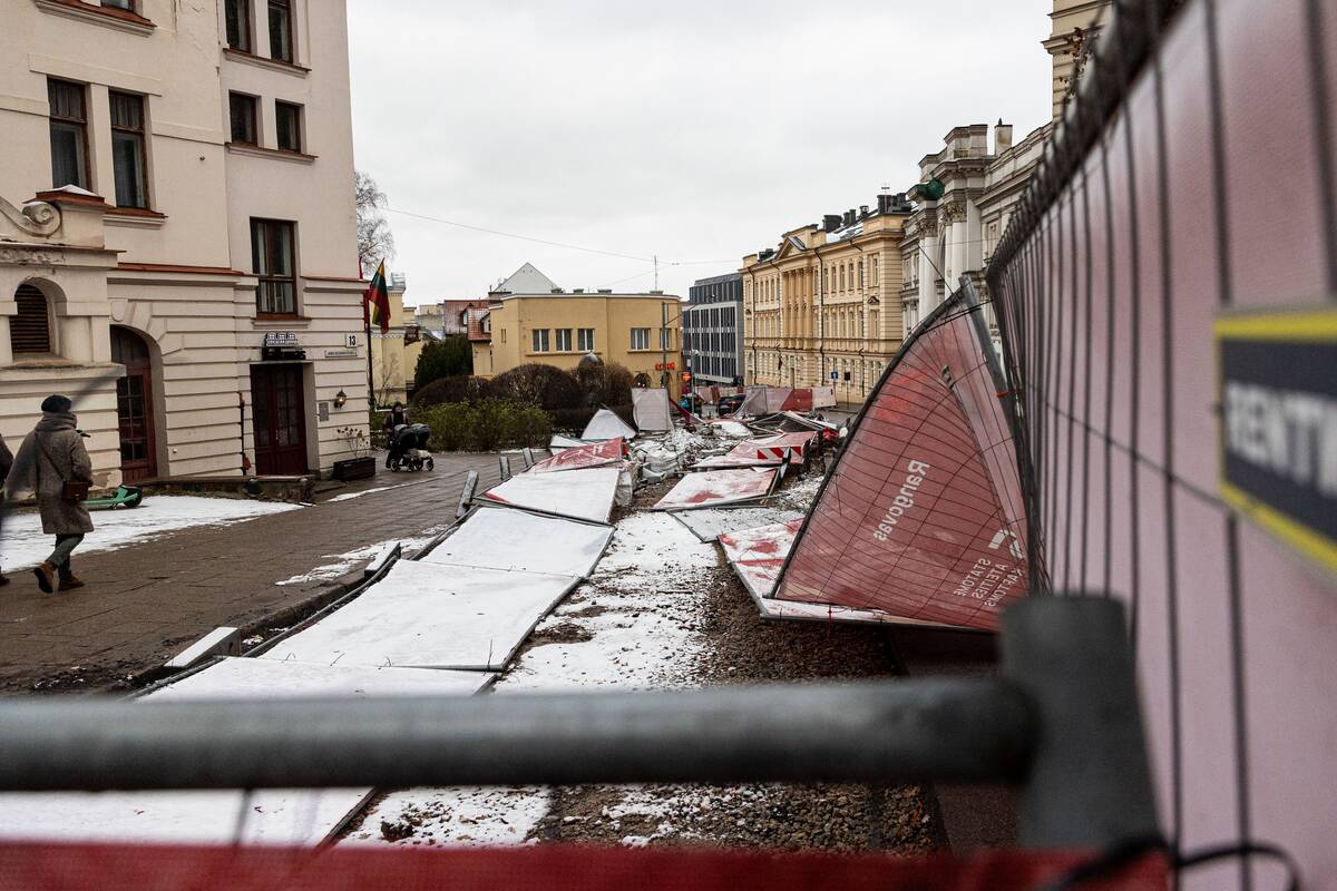 Stiprus vėjas Vilniuje išvartė apsaugines tvoras