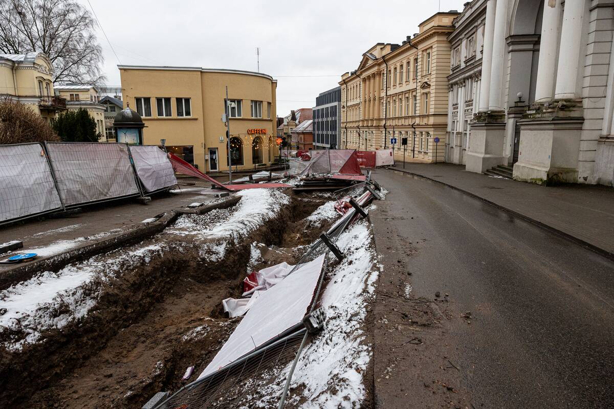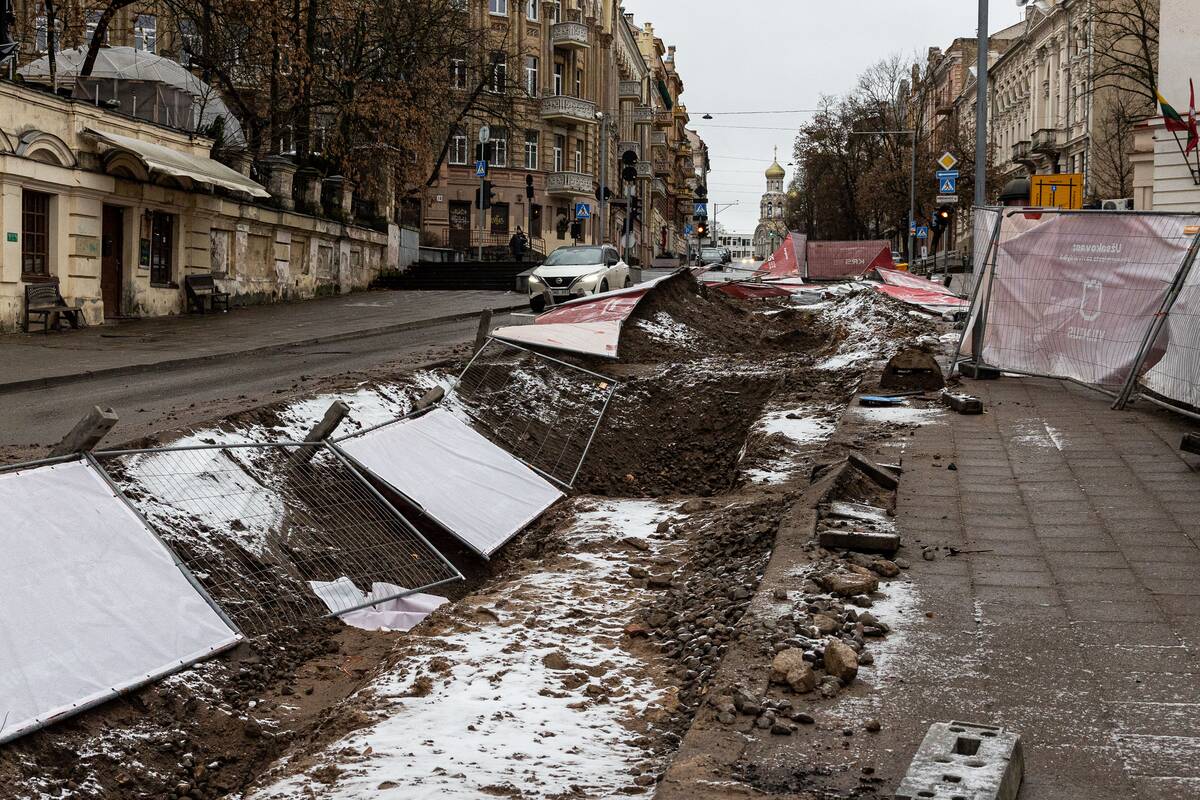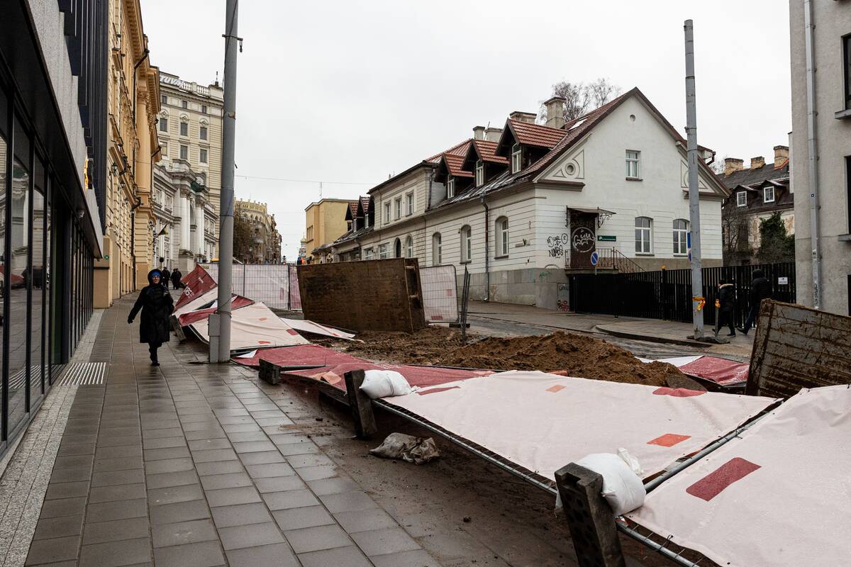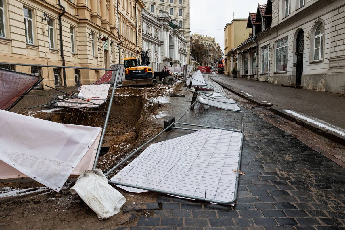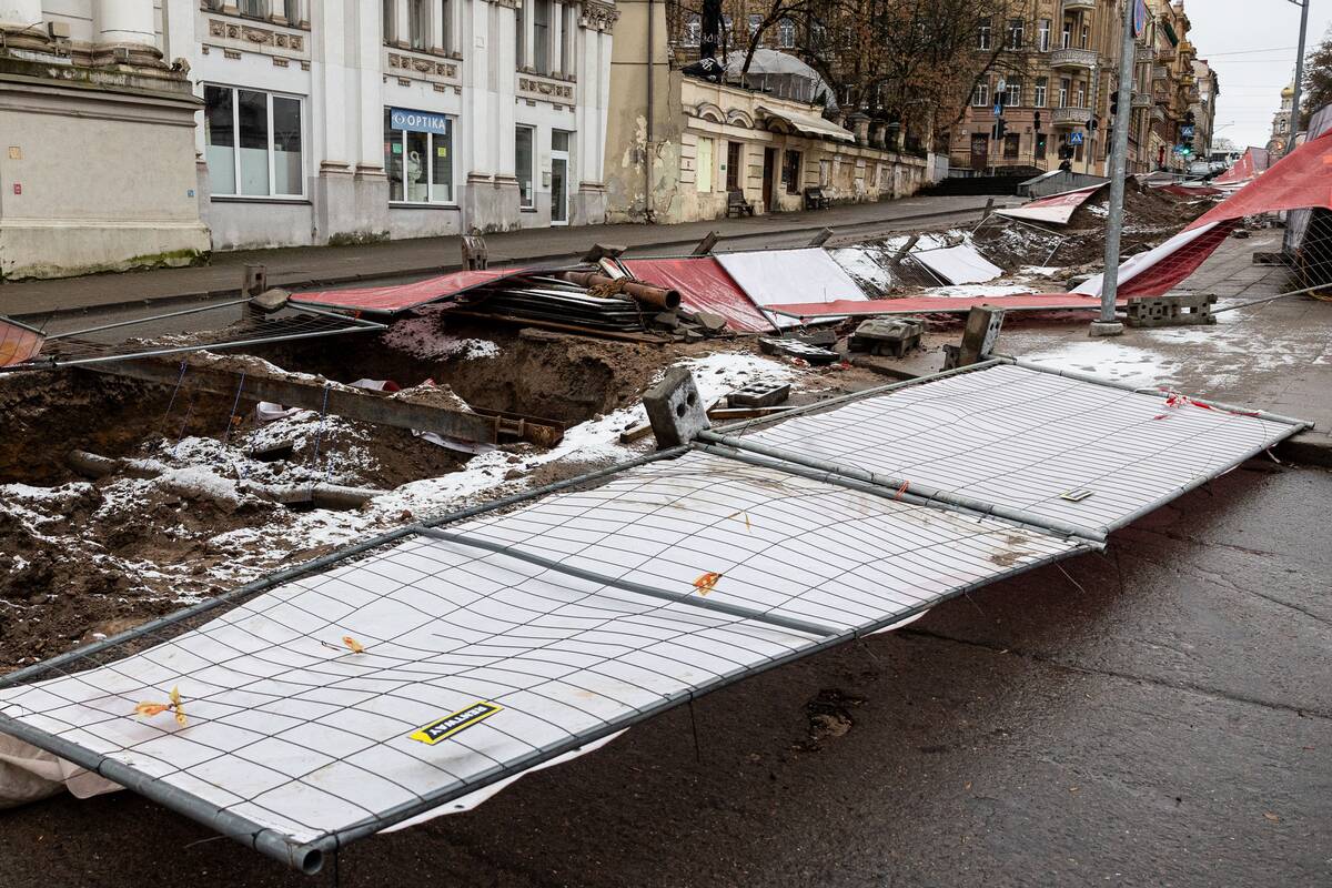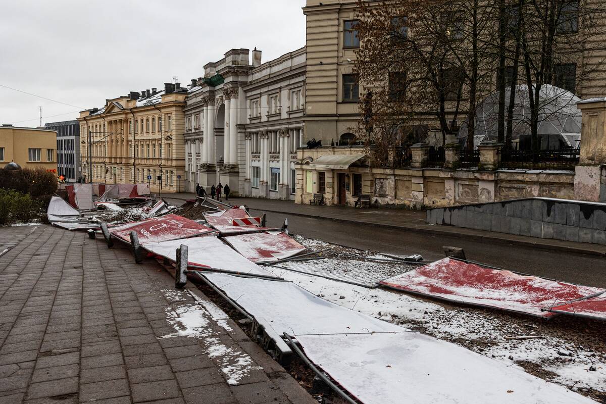 Stiprus vėjas Vilniuje išvartė apsaugines tvoras