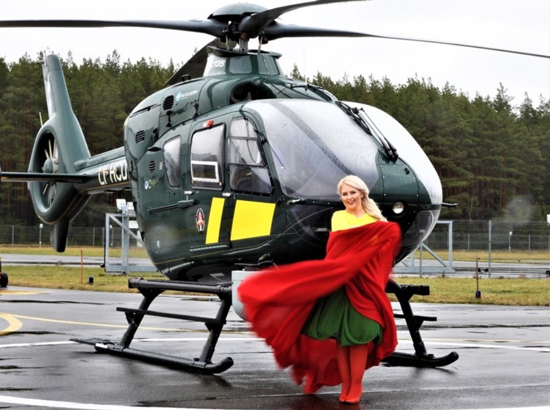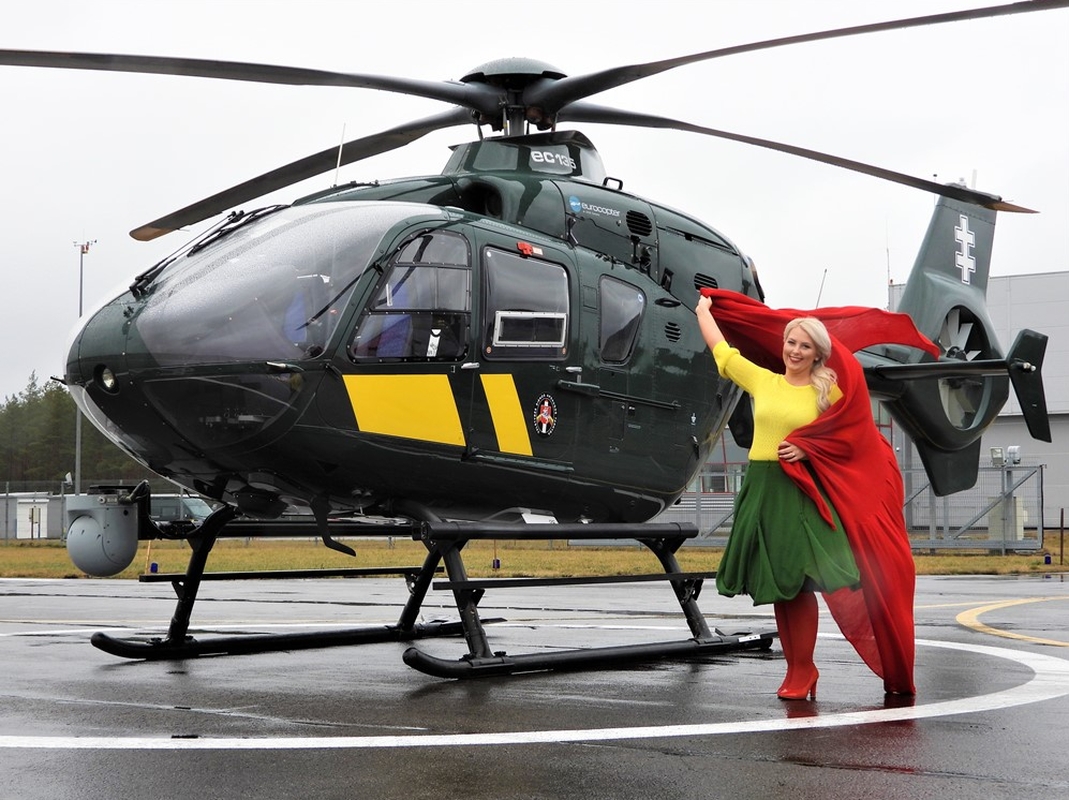 Vieną originali trispalvė, kurią dizainerė Milda Bordeaux pavertė suknele, buvo atgabenta ir į VSAT Aviacijos bazę Trakų rajono Paluknio miestelyje.