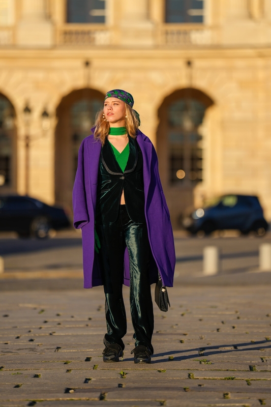 Mėgstantiems ryškumą A. Kurpatova siūlo rinktis melsvai violetinius viršutinius drabužius – paltus, striukes. Akį trauks ir tokio atspalvio kepurė ar batai.