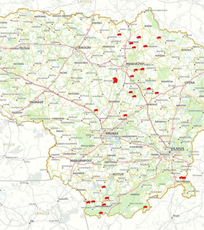 Šiuo metu iš 60 šalies savivaldybių AKM laukinėje arba naminėje faunoje nustatytas 27 savivaldybėse. Paskutiniai atvejai šį mėnesį registruoti Jurbarko rajone.