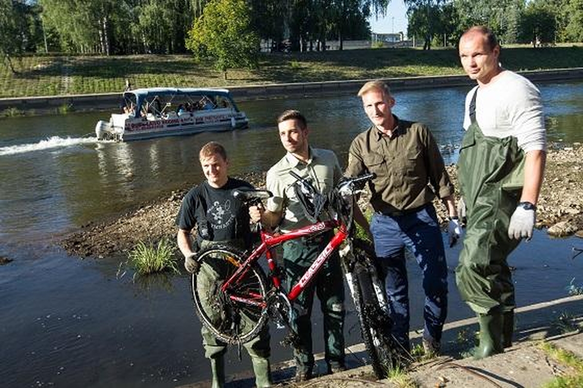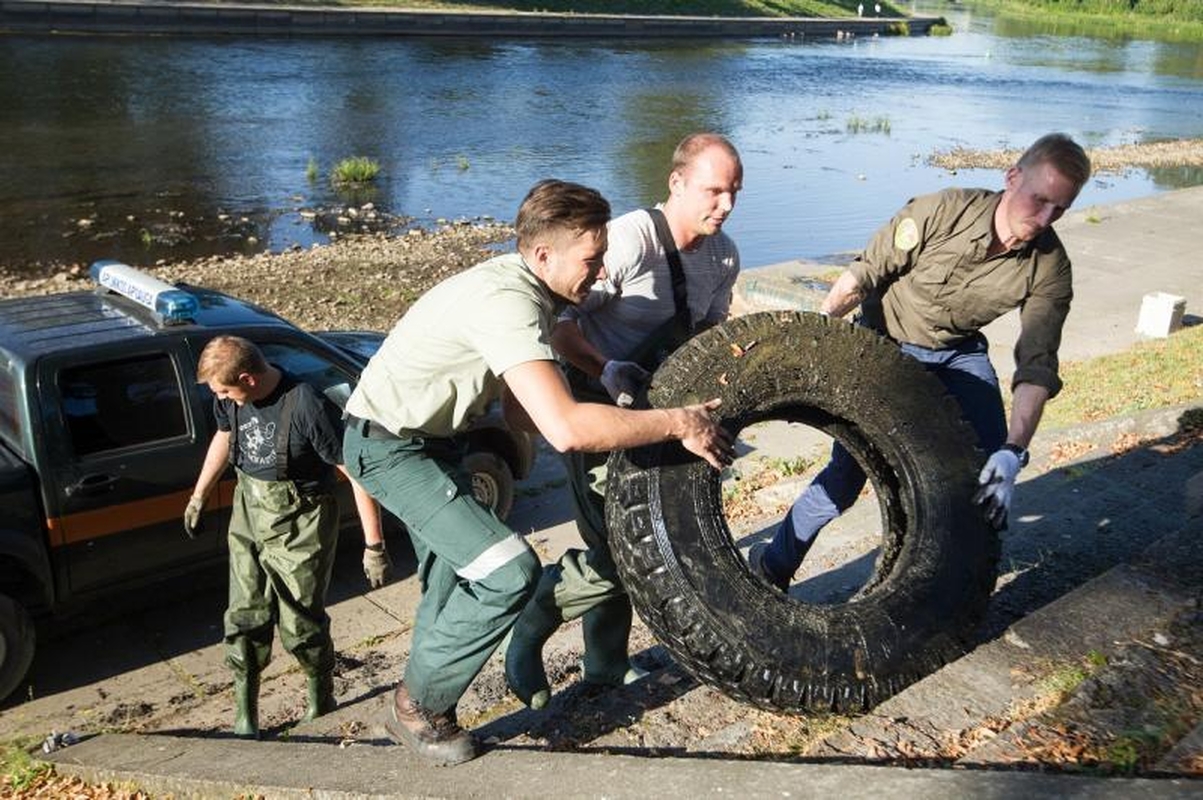 Plastiko, tekstilės, metalo atliekas, senas padangas, net dviratį – visa tai vakar aplinkosaugininkai traukė iš Vilniaus centre esančios dviejų upių santakos. Didesnius radinius teko traukti net automobiliu.
