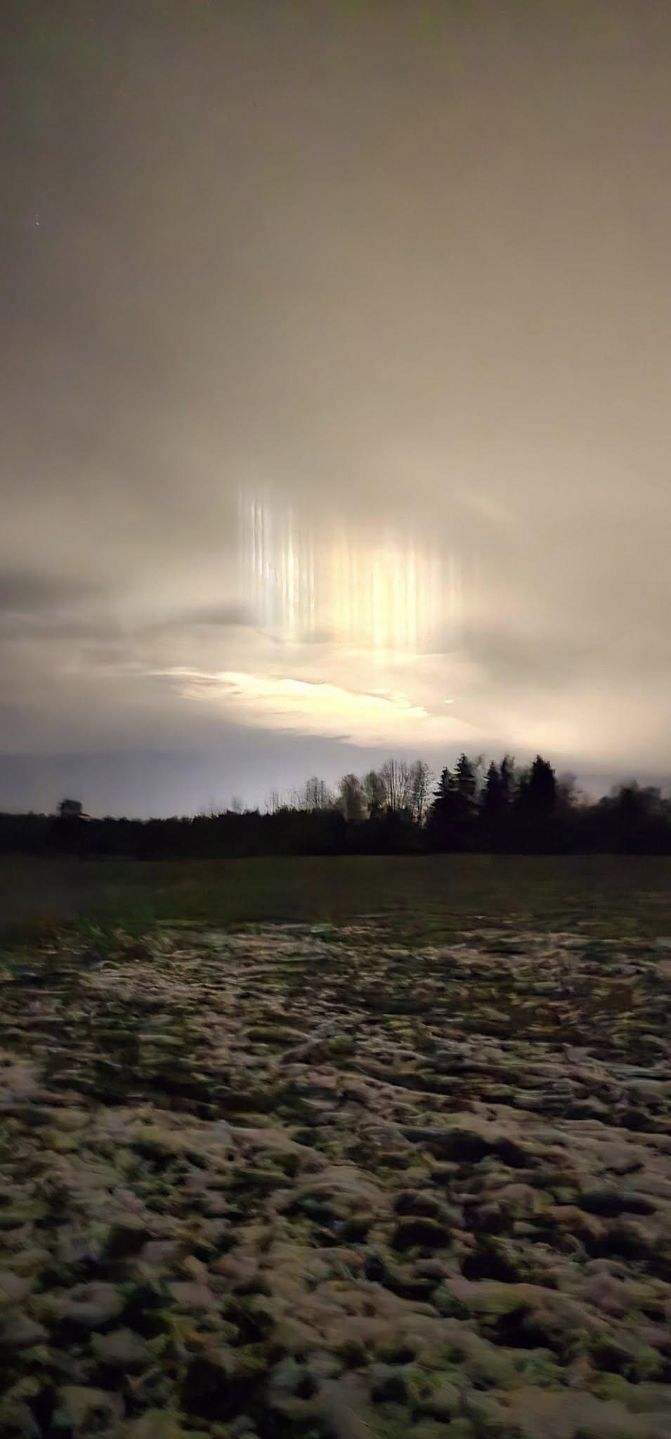 Nuotraukose matoma, kad vakaras buvo apniukęs, danguje daug drėgmės ir debesų — idealios sąlygos ledo kristalams pakibti ore ir atspindėti šviesą.