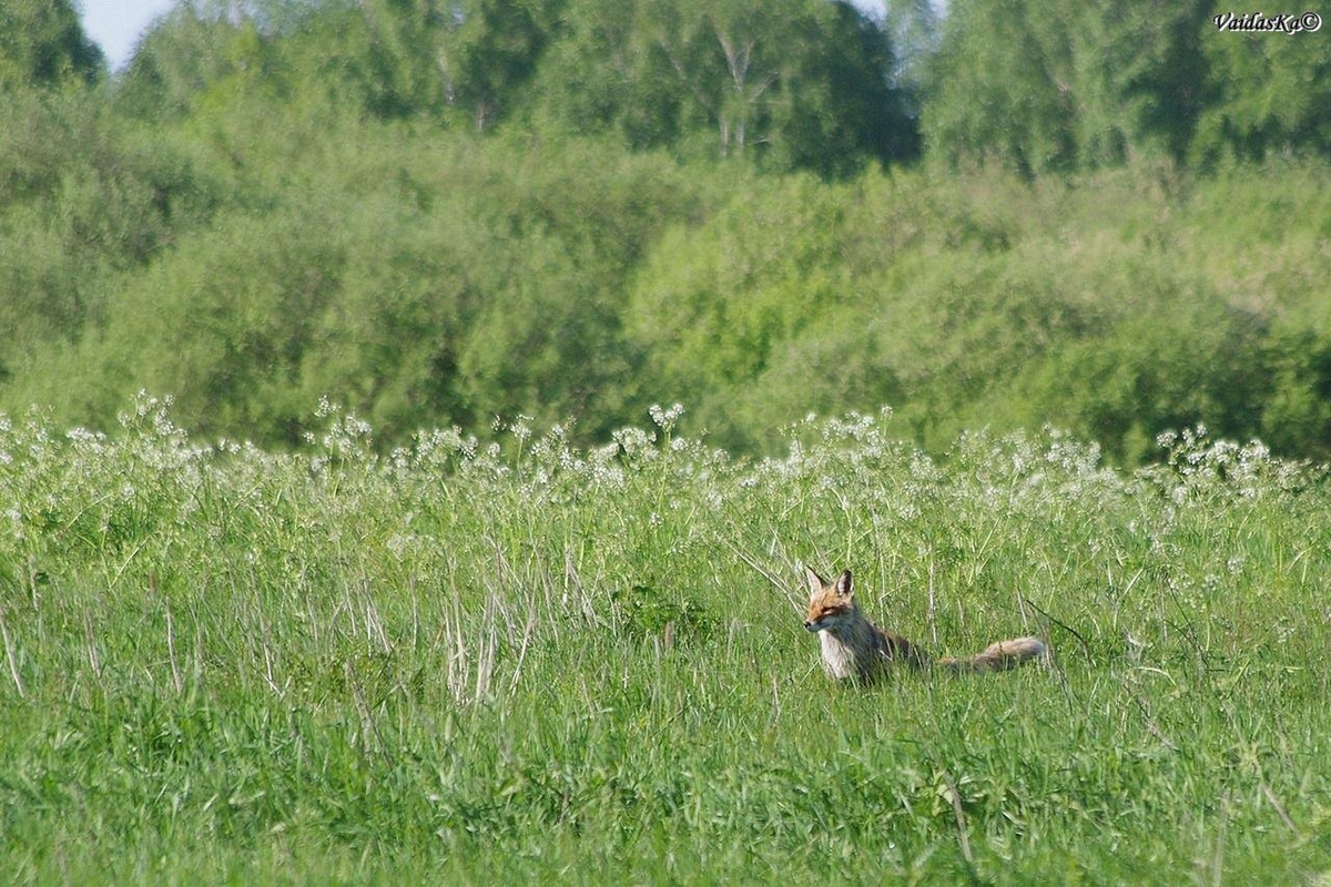 „Pykšt“, ir lapė jau guli. Lapiukai, žinoma, spruko į žoles, bet po kurio laiko vienas kyštelėjo galvą apsidairyti. Dar vienas „pykšt“...