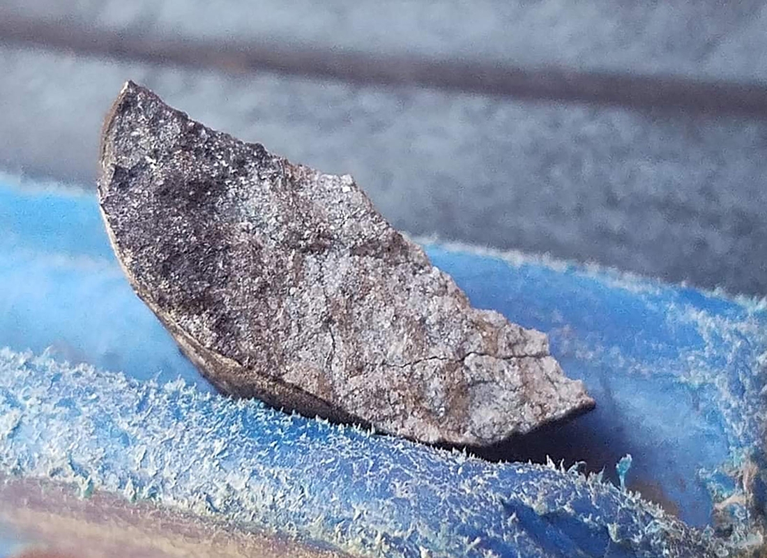 Paskelbtose rastų nukritusių objektų nuotraukose matyti nedideli juodi akmenėliai. Perskėlus jų viduje matyti tamsiai raudonos gyslos.