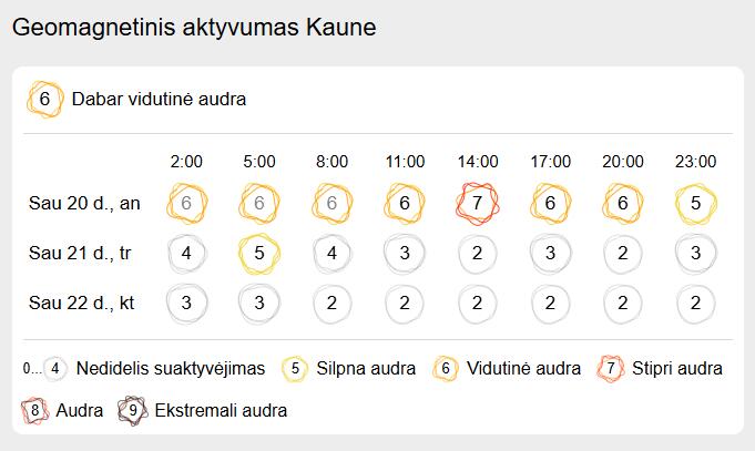 Vilniuje situacija panaši. Tiesa, čia magnetinė audra fiksuota jau ryte, 8 val., tačiau 14 val., kaip ir Kaune, bus stebima stipri audra.