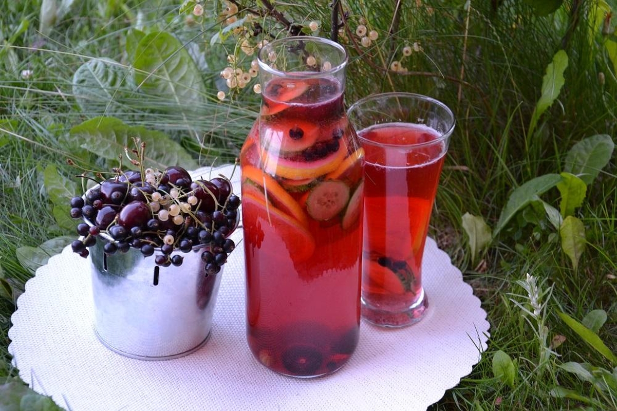 Po pusę stiklinės agrastų, serbentų, vyšnių (arba kitokių sodo uogų),