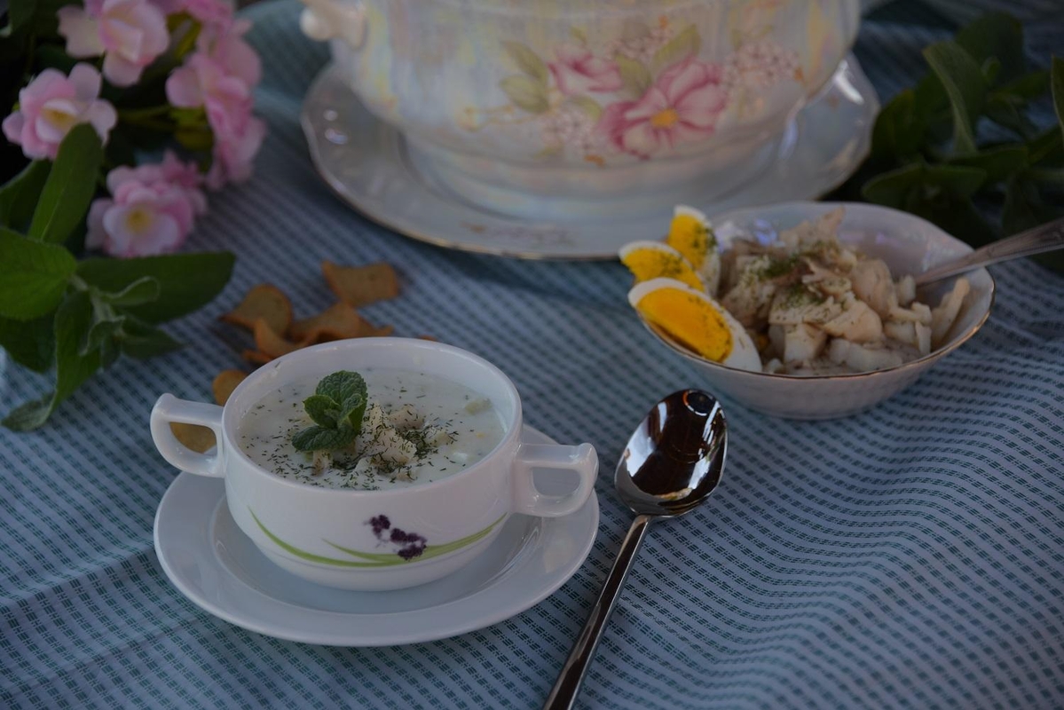 Balti šaltibarščiai su žuvimi