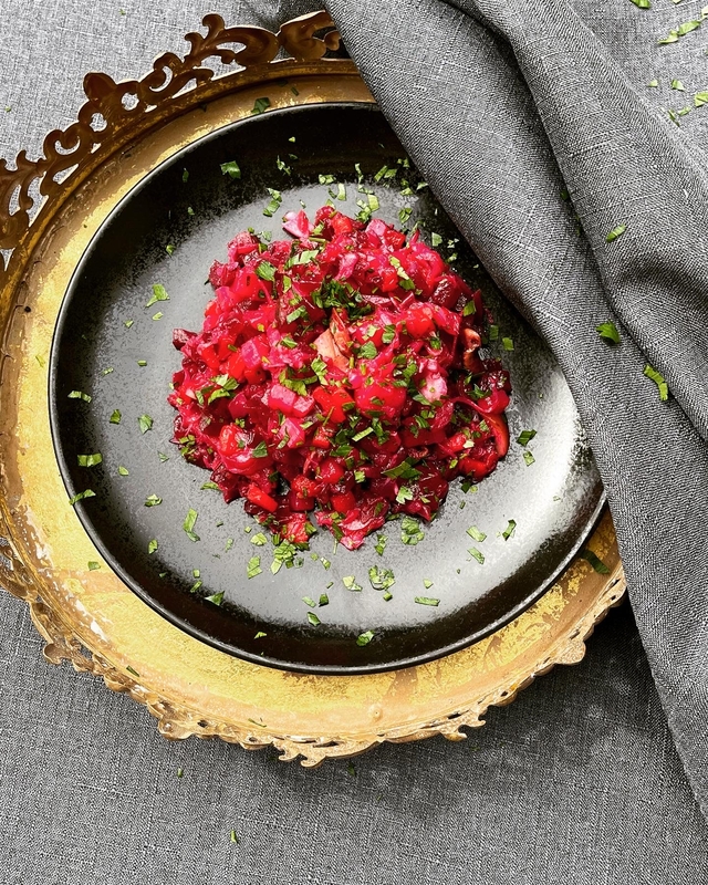 Burokėlių mišrainė su pievagrybiais