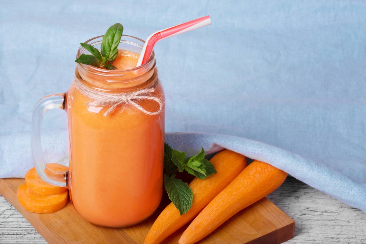 Morkas nulupkite, jas ir bananus susmulkinkite. Jeigu jūsų trintuvas nėra galingas, galite morkas prieš tai apvirti. Jei norite, kad glotnutis būtų itin kreminis, susmulkintą bananą įdėkite į maišelį ir palikite šaldiklyje bent valandai.