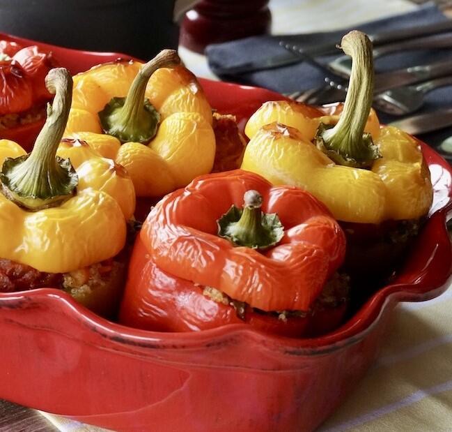 Rudeniškomis daržovėmis įdarytos paprikos