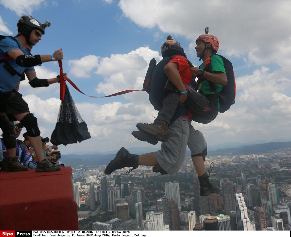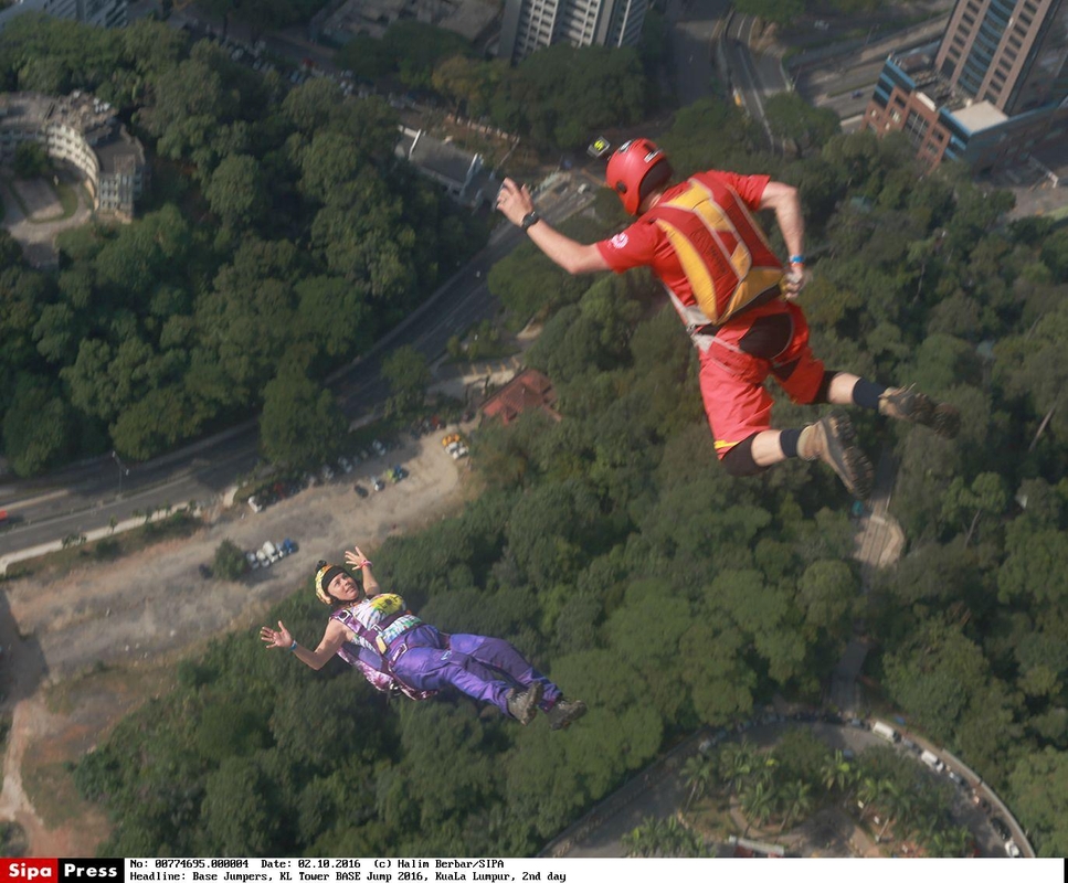 Šokdami iš 300 metrų aukščio adrenalino fanatikai kelias sekundes laisvai krenta ir tik tuomet išskleidžia parašiutus.