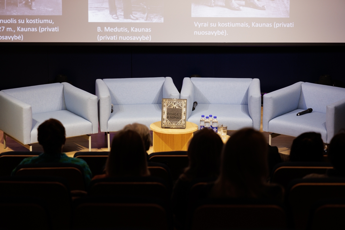 „Fotografija tapo savotiška mados tendencija, nes žmonės užsisakydavo portretų dėl pramogos, kaip atminimą. Studijinė fotografija tarpukariu klestėjo, įgalindama fotografus ne tik gerai įvaldyti techniką, bet ir ieškoti originalaus rakurso, sukuriančio išraiškingą portretą“, – kalbėdama knygos autorė akimis darsyk palydėjo savo senelių veidus ekrane, kabančiame jai už nugaros.