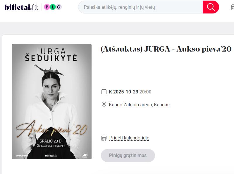 Bilietus įsigijusiems internetu pinigai bus grąžinti į tą pačią sąskaitą, iš kurios buvo atliktas mokėjimas. Pinigai bus pervesti iki 2025 metų spalio 25 dienos.