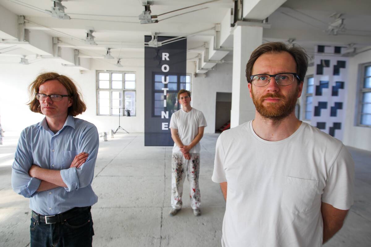 Jauni vyrai, kurie nesinaudoja feisbuku, dievina modernizmo herojiškumą ir maloniai atskleidžia savo kūrybinius sumanymus – būtent tokie atrodo "Konsortium" nariai: Larsas Breueris (L.B.), Sebastianas Freytagas (S.F.) ir Guido Münchas (G.M.). Savo projektą "Drobės" fabrike jie įgyvendino bendradarbiaujant su VDU menų galerija "101" (kuratorė Daiva Citvarienė).