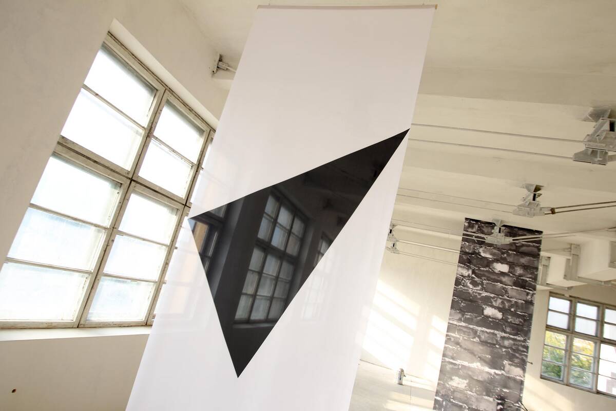 G.M.: Tai priešingybės. Visa tai gimė kaip mūsų dialogas, tyrimas, ką su šita vieta daryti, ką joje sukurti. Elementai, kuriuos rodome čia, jau buvo pasirinkti seniai, kiekvienas jų atspindi kiekvieną iš mūsų. Aš pasirinkau apskritimą, Sebastianas – trikampį, o Larsas – statmenas formas. Kartu tapėme vieną paveikslą, sujungdami savo individualumą.