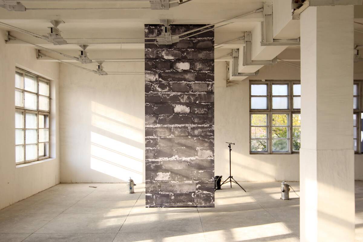 Audinio atraižos persišviečia. Taip suteikiama galimybė tas pačias baltas patalpos sienas pamatyti kartu skaitant ant audinių esančius žodžius ar bandant apgauti akį – geometrines figūras, pavaizduotas audiniuose, perkelti ant patalpų sienų. Viskas šioje patalpoje išskaidyta, sukuriant griežtai apibrėžtą chaosą. Gamyklos išorėje, ant milžiniškos sienos, viskas sujungiama – geometrinės formos, žodžiai, spalvos, idėjos.