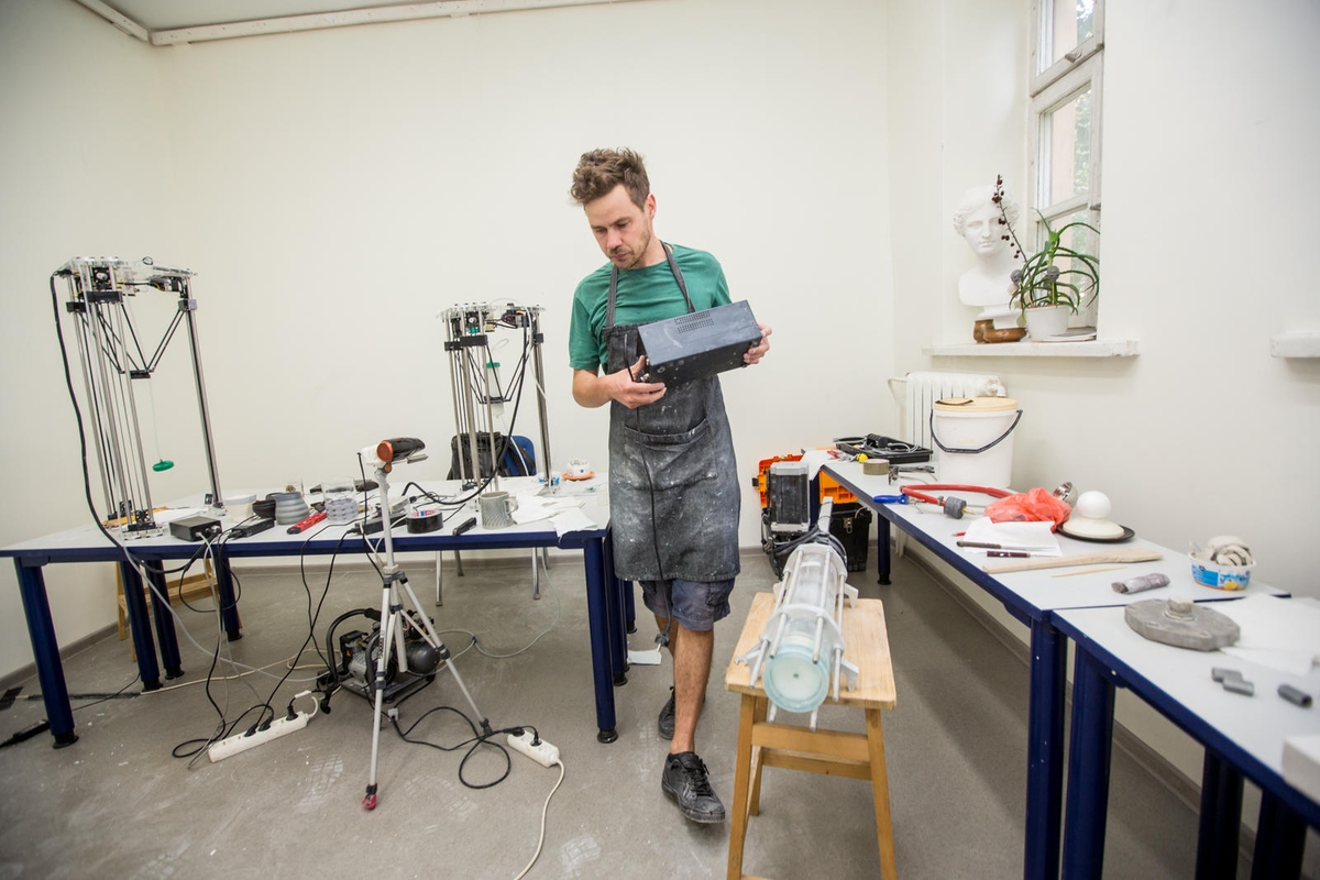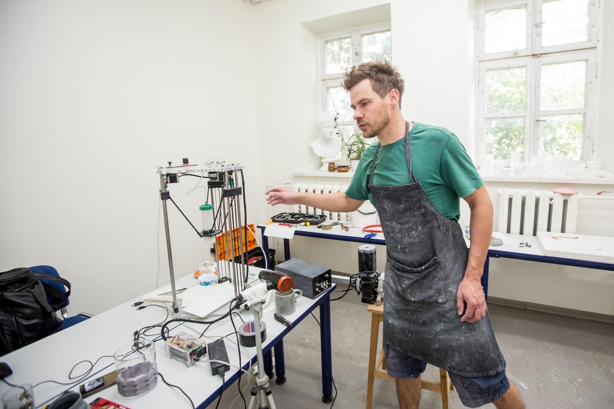 Kitas simpoziumo dalyvis, Estijos dailės akademijos lektorius Lauris Kiluskas, keramikos srityje specializuojasi jau 20 metų. Prieš trejus metus pradėta praktikuoti 3D spausdinimo technika jį pakerėjo suteikiamomis galimybėmis. Vis dėlto tiksliai kompiuteriu suprojektuotą darbo modelį ne visada pavyksta tobulai atspausdinti. "Daug dirbu su moliu. Ši medžiaga – itin sudėtinga kontroliuoti. Kai išimi molį iš spausdintuvo, jis būna visiškai minkštas, tad, norint sukurti aukštesnį kūrinį, tenka nemažai pavargti", – proceso subtilybes atskleidė jis.