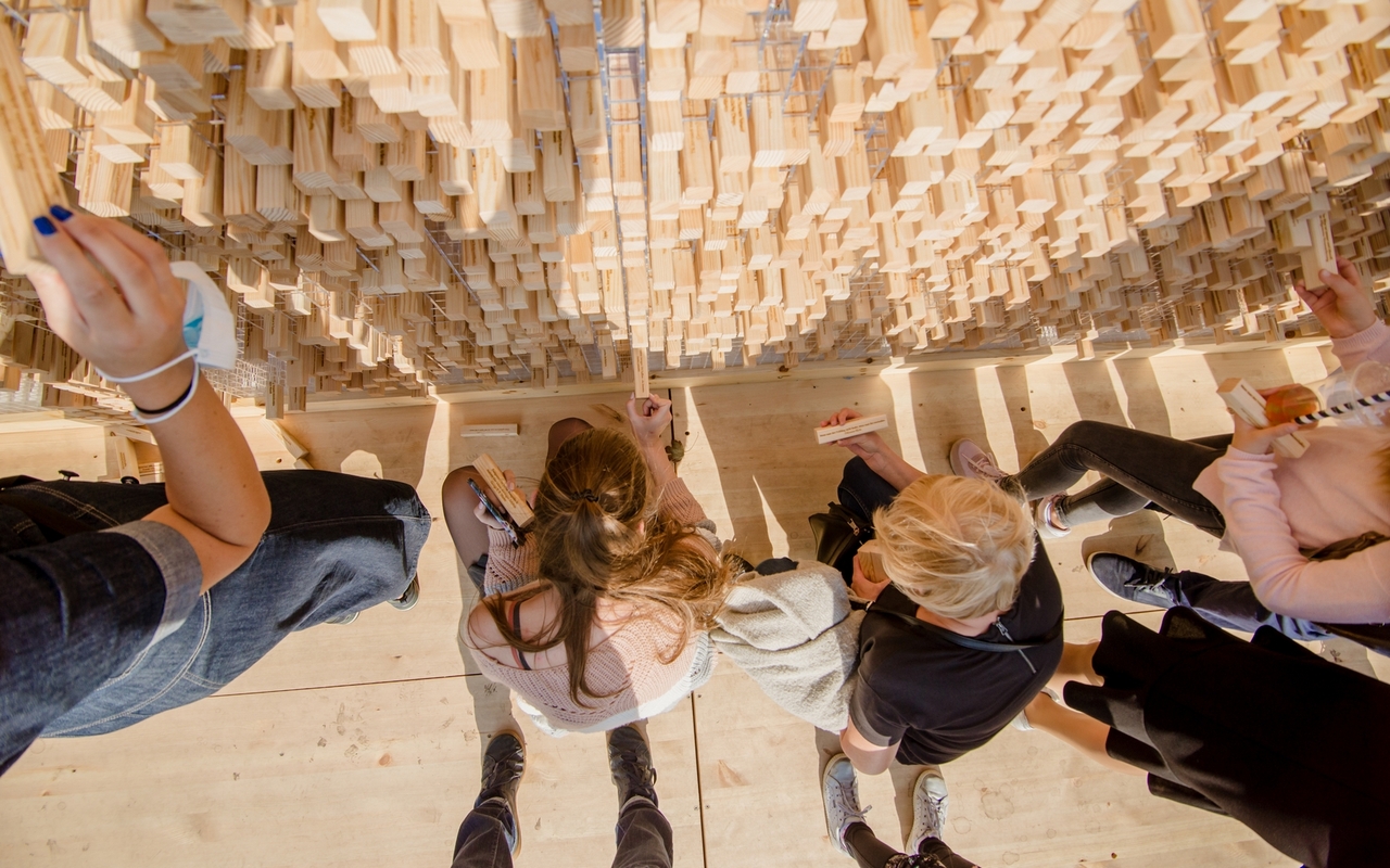 Dviejų metrų aukščio sienoje – daugiau nei šimtas citatų lietuvių, vokiečių, ukrainiečių bei kitomis Europos kalbomis, išgraviruotų ant 6 000 medinių kaladėlių. Immanuelio Kanto mintys, „The Beatles“ dainos eilutė, Serhijaus Žadano, Jono Meko citatos – čia bus galima atrasti europietiškos mąstysenos koncentratą, o mėgstamiausią citatą pasiimti namo – kaip suvenyrą, sakoma VDU pranešime.