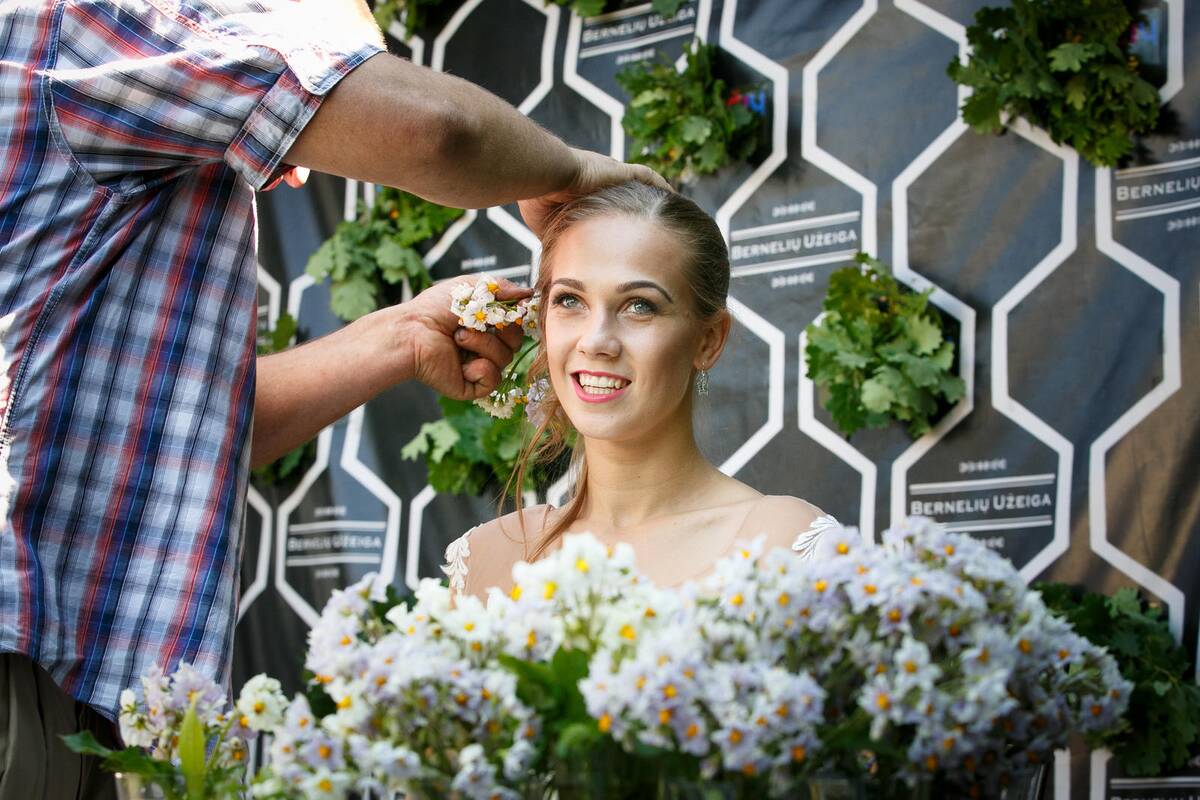 Nors tikrosios Joninės tik rytoj, kauniečiai jau šiandien jas išskirtinai paminėjo. Šilainiuose įsikūrusioje „Bernelių užeigoje“ žinomas floristas ir dizaineris sukūrė naują, dar nematytą rekordą – modelio galvą papuošė dviem tūkstančiais bulvių žiedų.