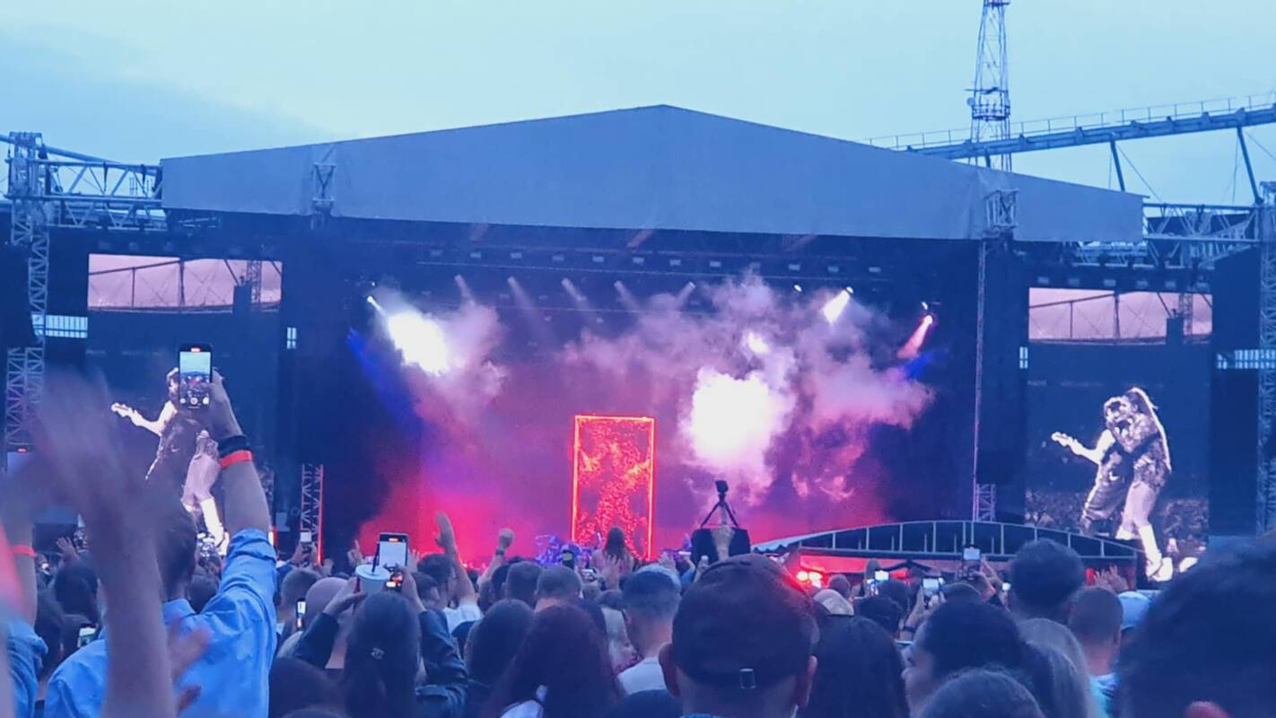 Į publiką jis kreipėsi garsiu šūksniu „Lithuania“ (Lietuva! – aut. past.). „Visi!“ – ragindamas susirinkusiuosius dainuoti kartu ištarė superžvaigždė.