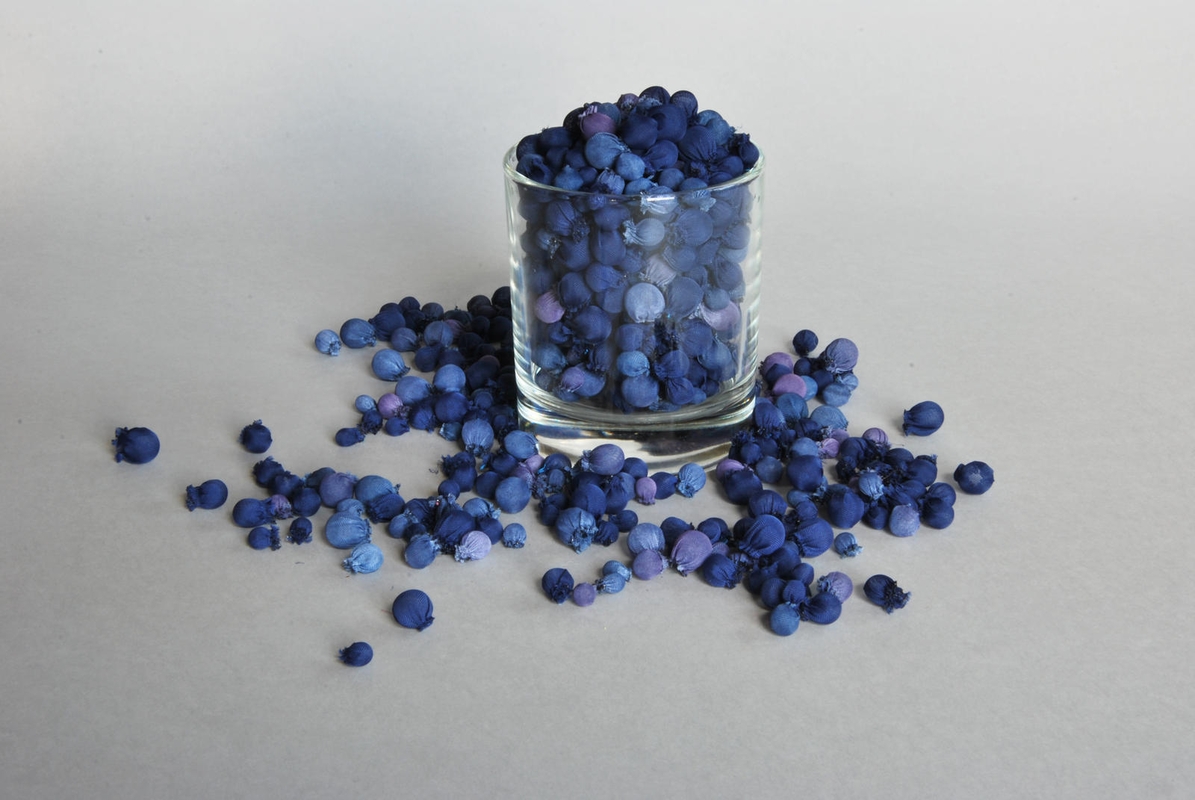 Rinkdami mėlynes kartais skundžiamės, kaip lėtai ir nuobodžiai pildosi miško gėrybėms paimtas krepšelis, tačiau surinkti šibori mėlynes užtrunka daug ilgiau. "Tokių mėlynių nei per vieną, nei per dvi dienas nepadarysi. Su išvirimu, išardymu, išdžiovinimu, apdaila – vienai stiklinei reikia paskirti bent savaitę", – visą kolekciją menininkė kūrė maždaug metus.