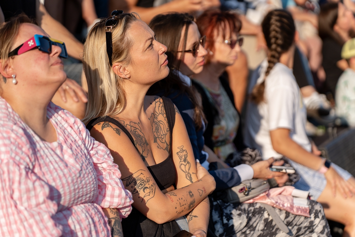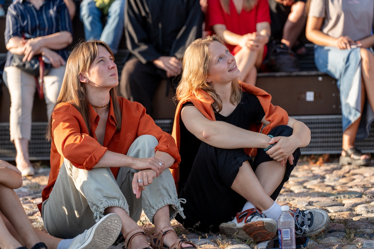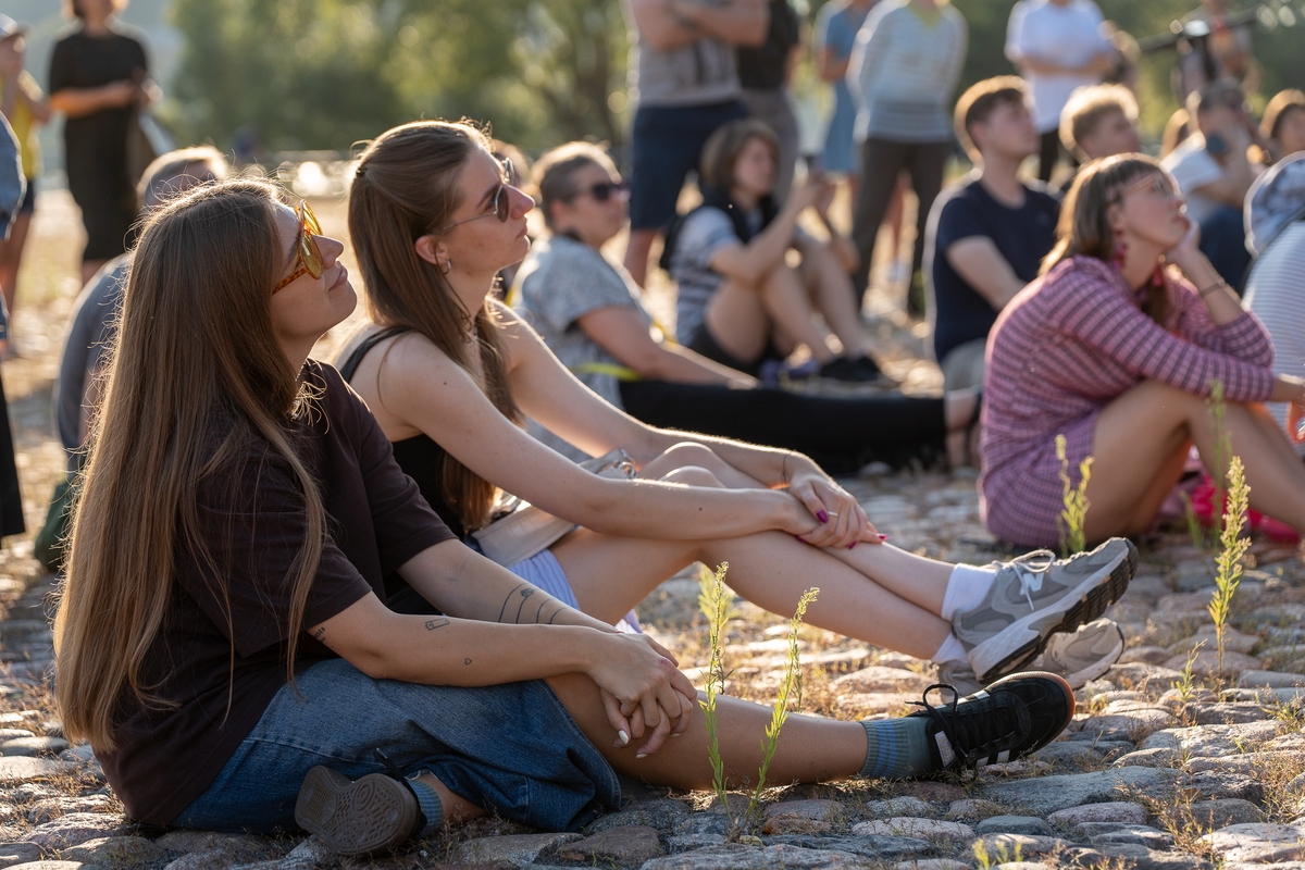 „Kažkaip labai lėtai čia viskas. Bet palauk, tikrai, o kur skubėti? Net nesupratau, kokia esu įsitempusi po darbo dienos“, – rimo viena iš renginio žiūrovių. Kai kurie susirinkusieji buvo sustoję puslankiu prie pat pasirodymo vietos, kiti buvo įsitaisę kiek atokiau ant apžvalgos aikštelės suolelių.