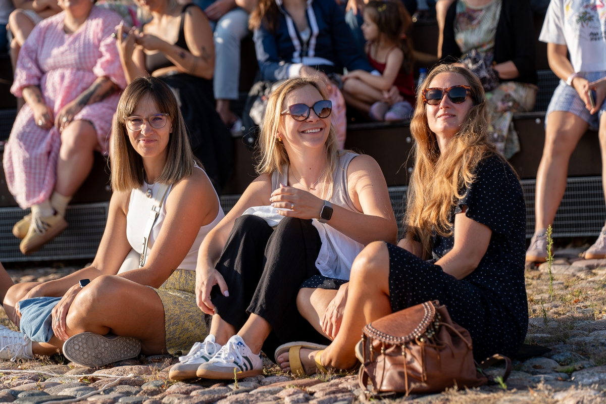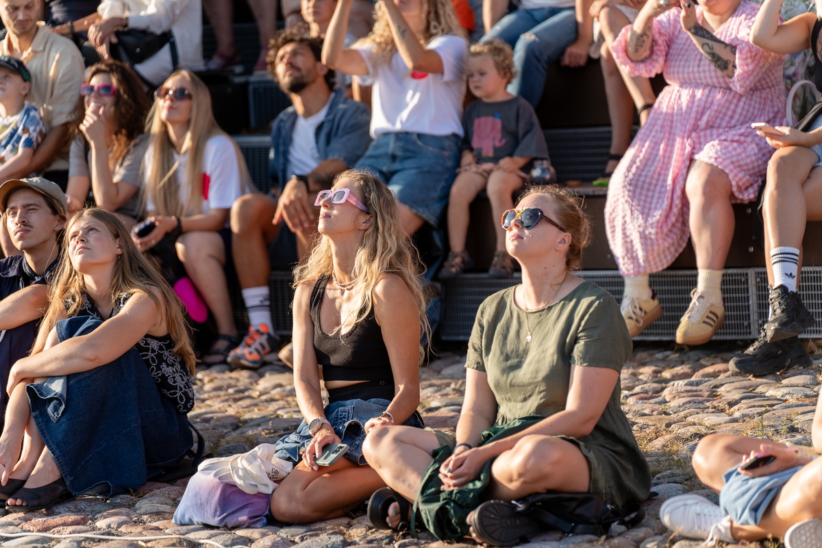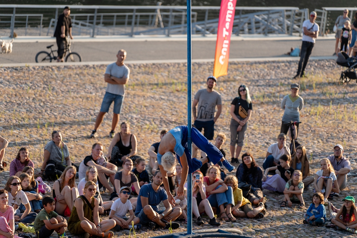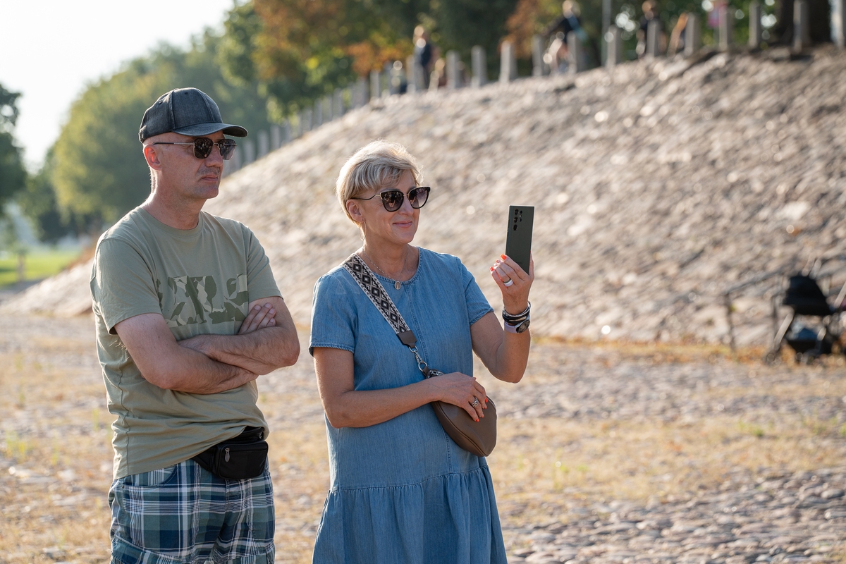 „Kažkaip labai lėtai čia viskas. Bet palauk, tikrai, o kur skubėti? Net nesupratau, kokia esu įsitempusi po darbo dienos“, – rimo viena iš renginio žiūrovių. Kai kurie susirinkusieji buvo sustoję puslankiu prie pat pasirodymo vietos, kiti buvo įsitaisę kiek atokiau ant apžvalgos aikštelės suolelių.