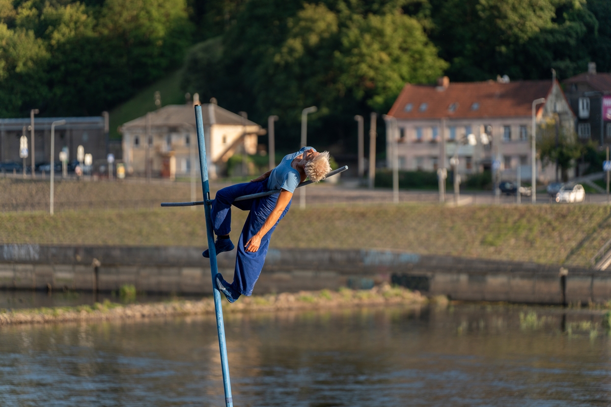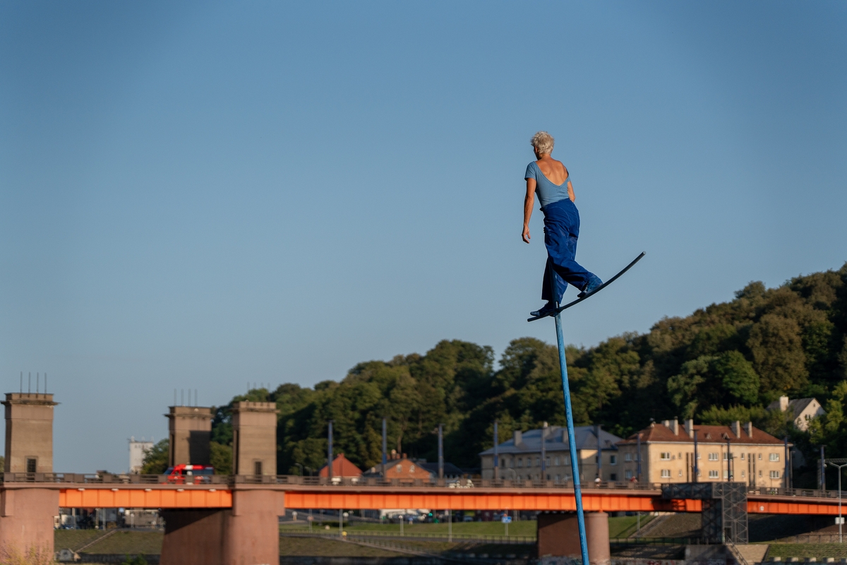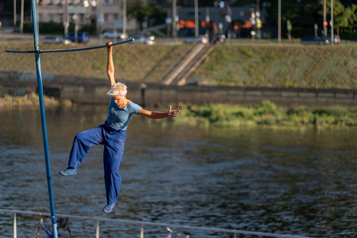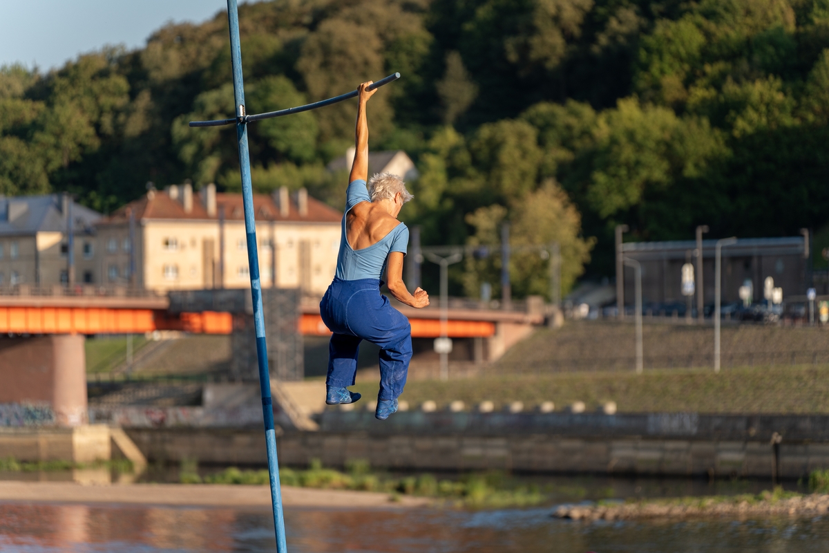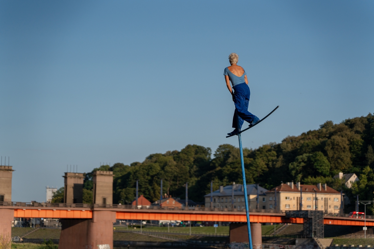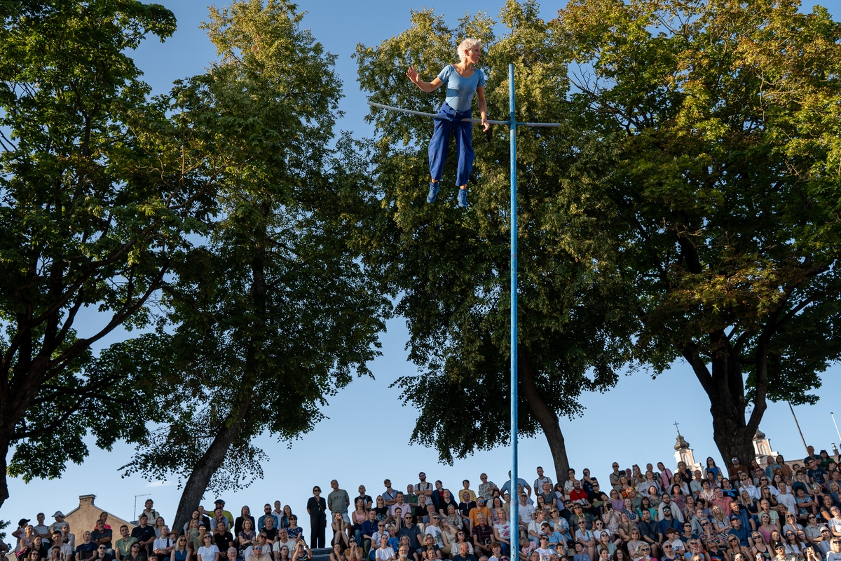 Tai vieno iš festivalio renginių, kuriame artistė susirinkusiųjų dėmesį prikausto įsitaisiusi šešių metrų aukštyje virš žemės, trajektorija.