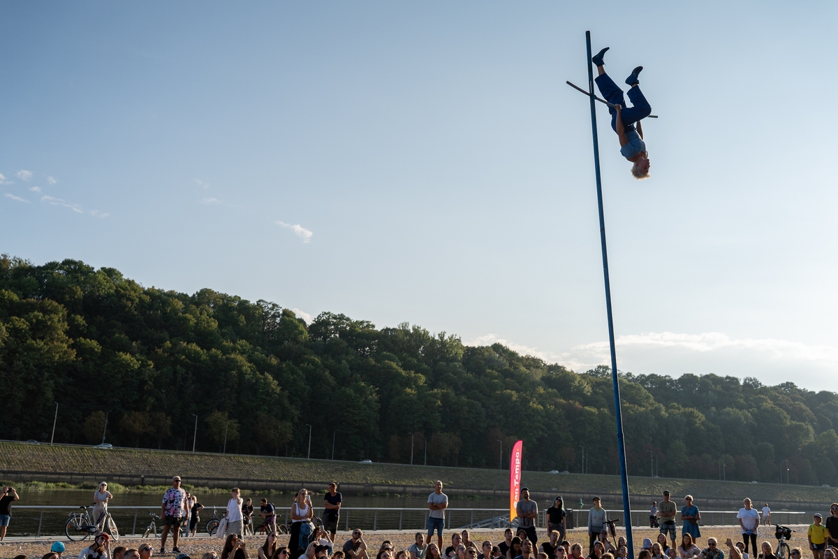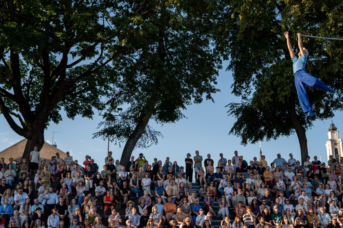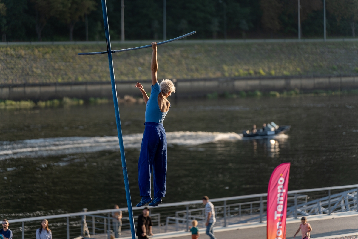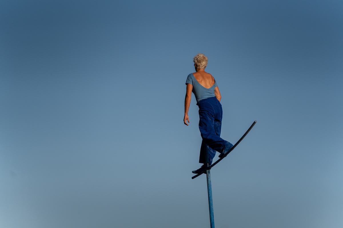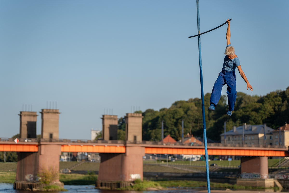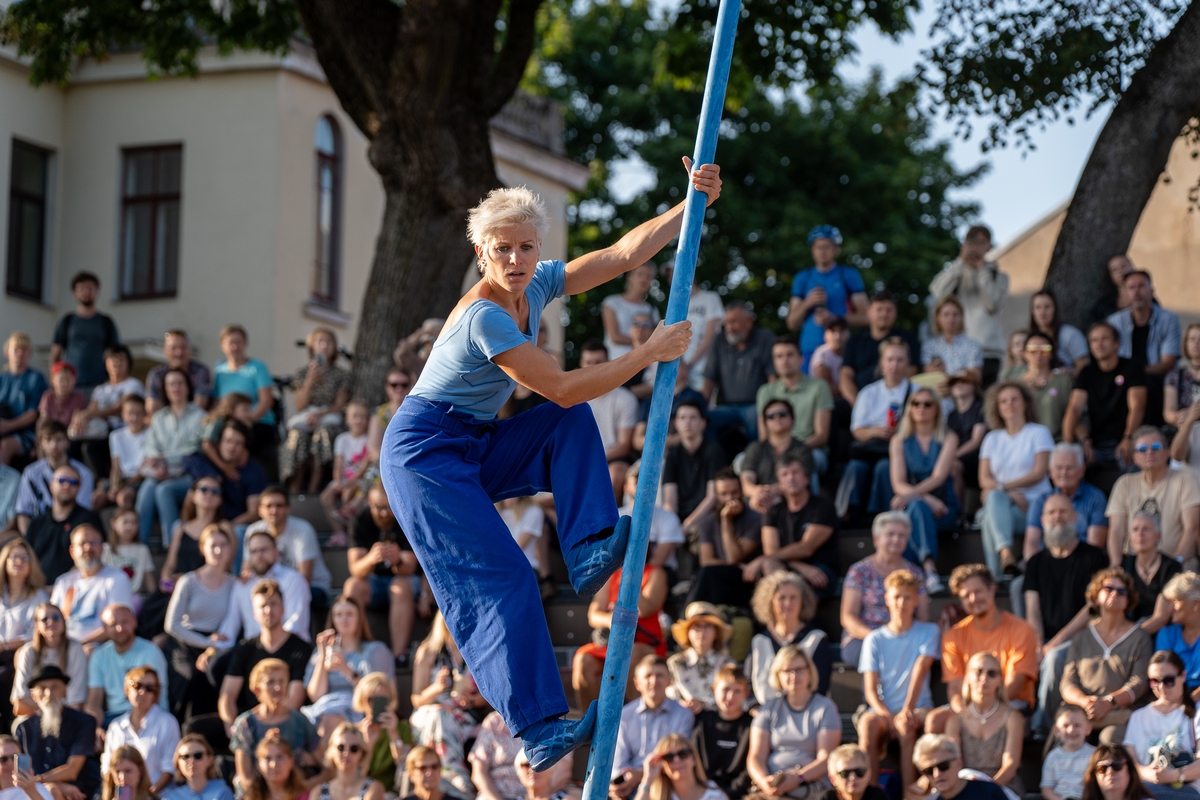Tai vieno iš festivalio renginių, kuriame artistė susirinkusiųjų dėmesį prikausto įsitaisiusi šešių metrų aukštyje virš žemės, trajektorija.