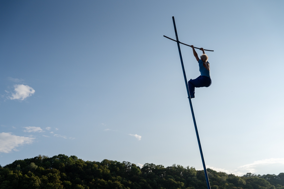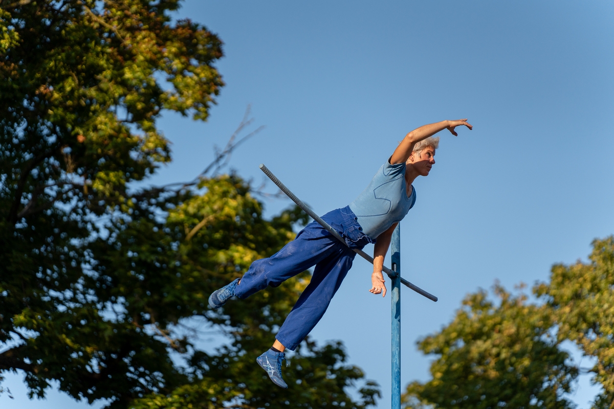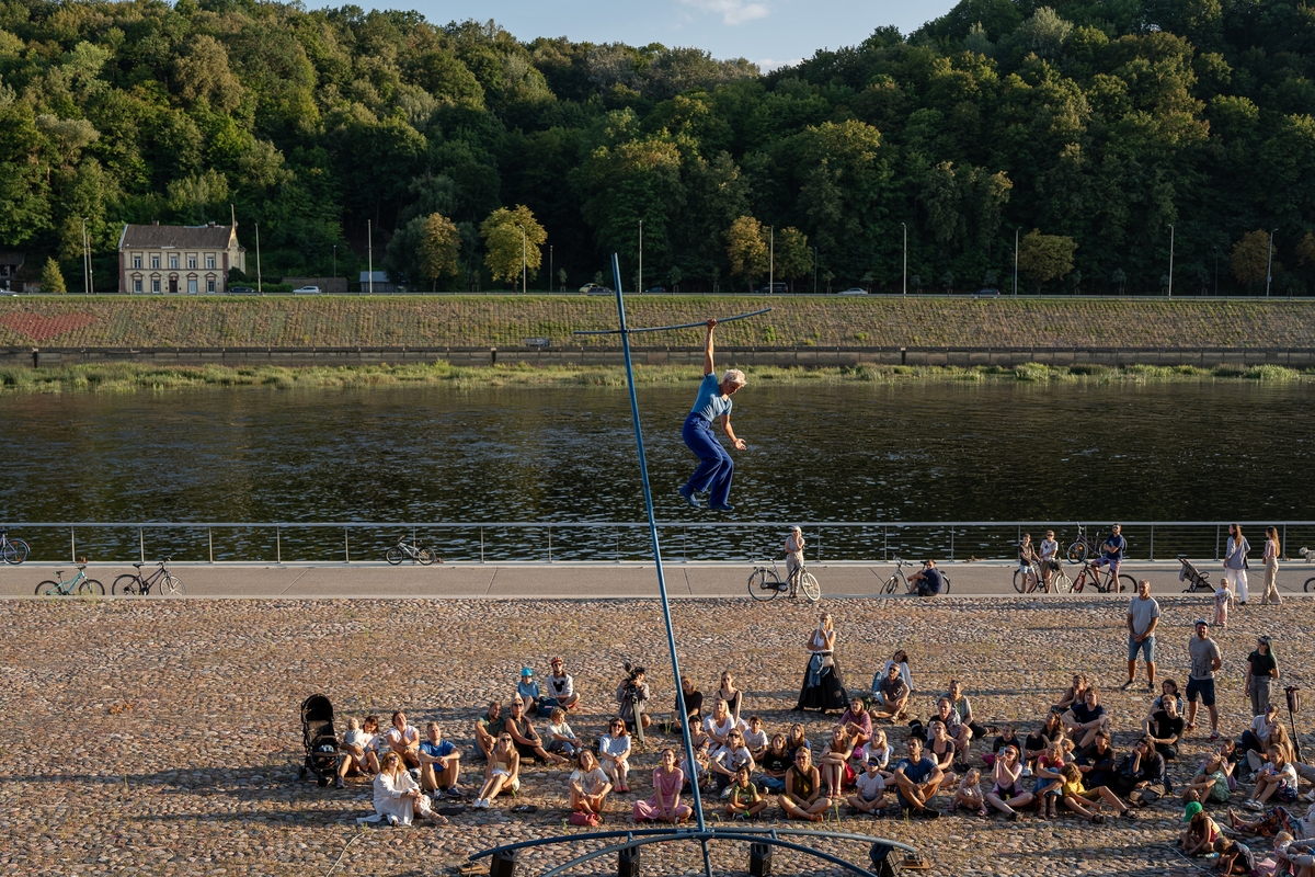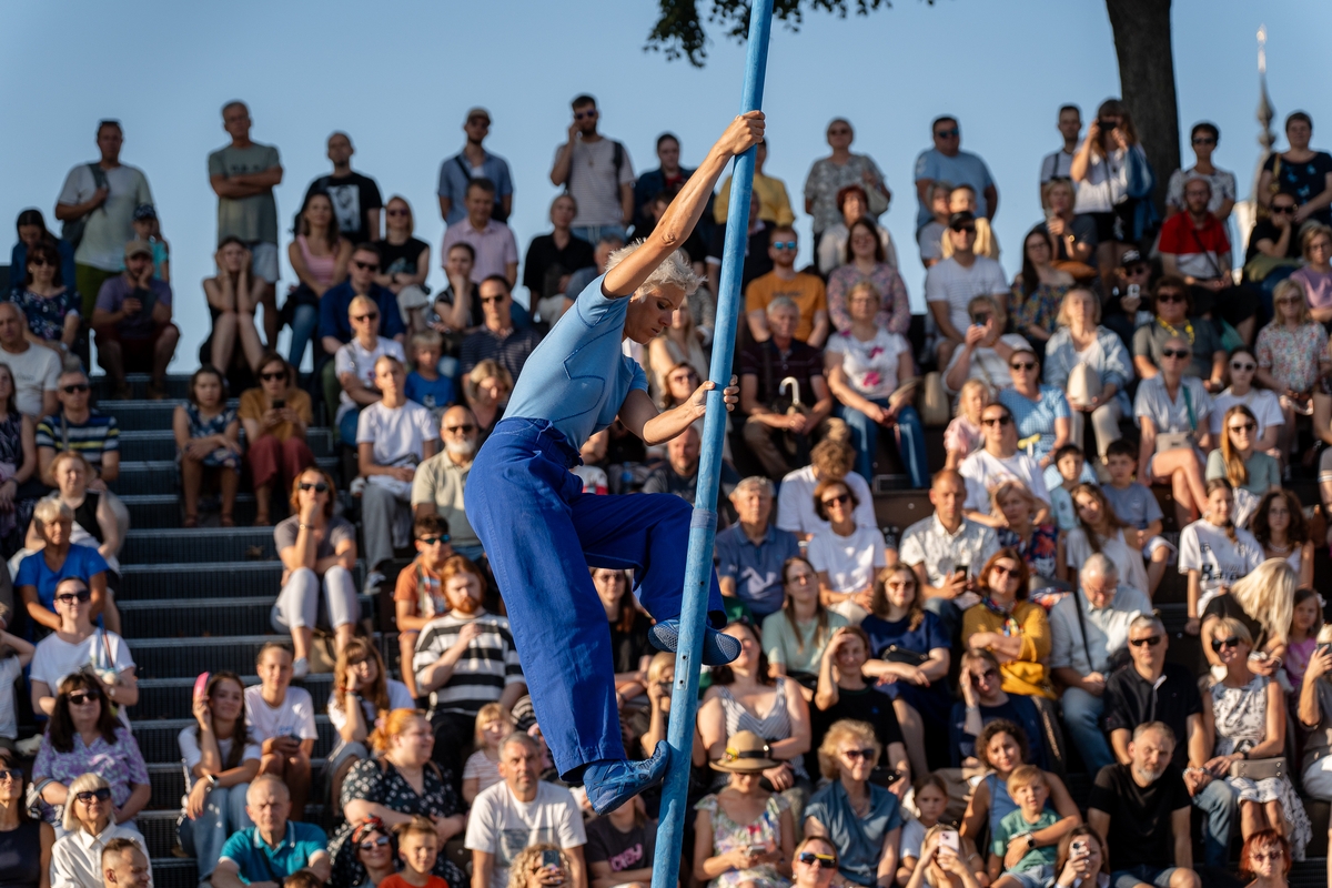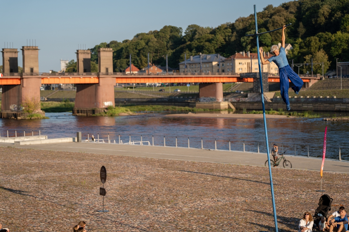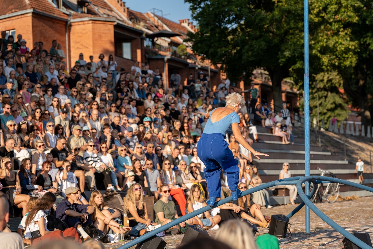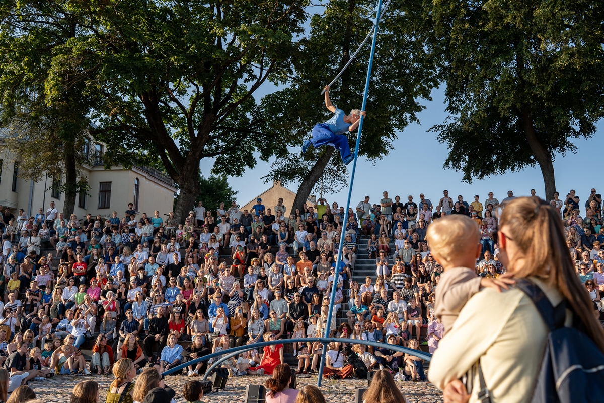 Tai vieno iš festivalio renginių, kuriame artistė susirinkusiųjų dėmesį prikausto įsitaisiusi šešių metrų aukštyje virš žemės, trajektorija.