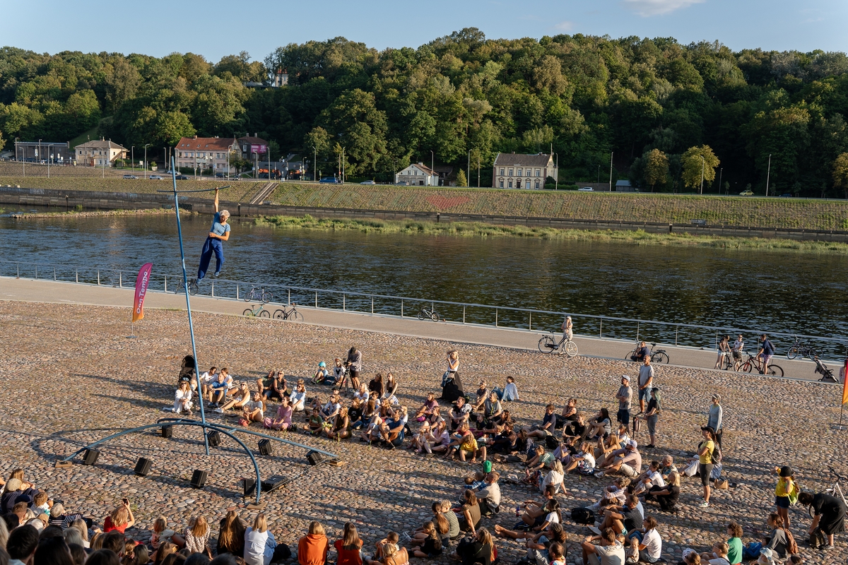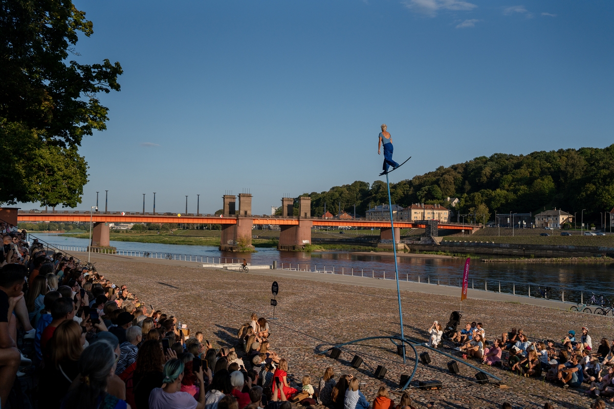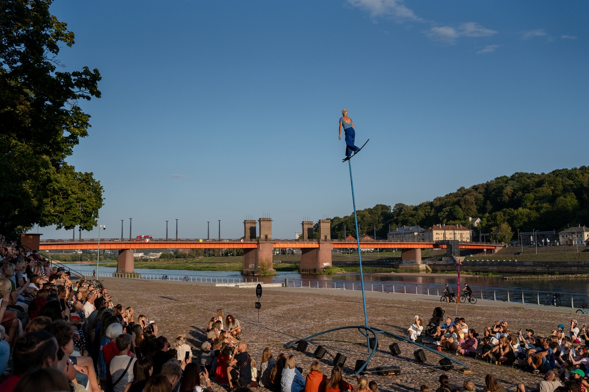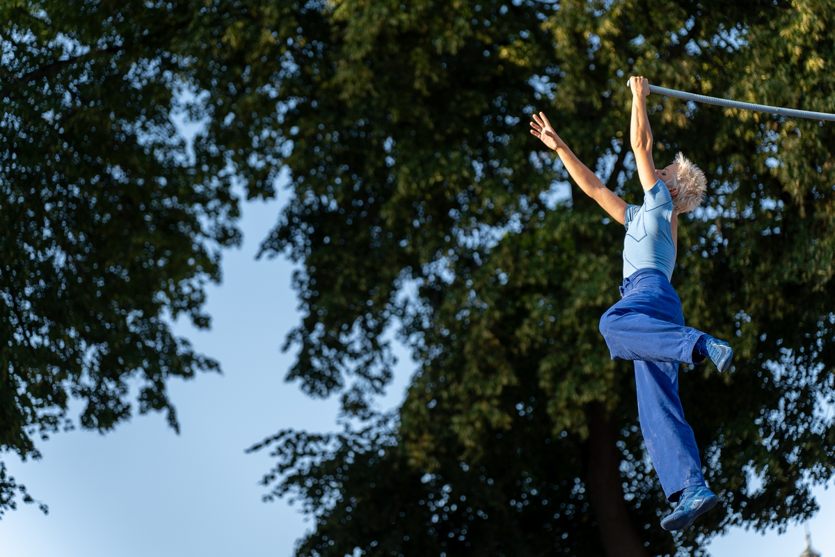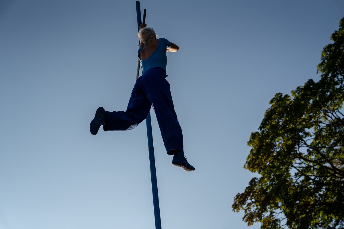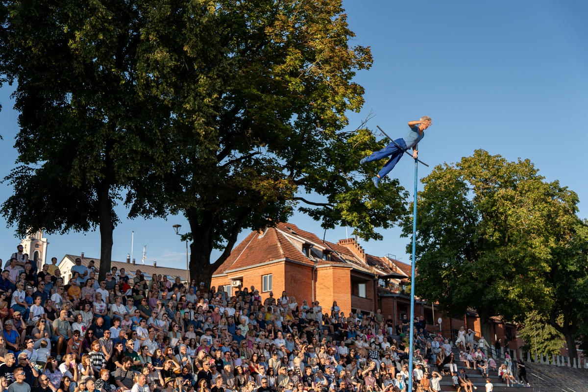 Tai vieno iš festivalio renginių, kuriame artistė susirinkusiųjų dėmesį prikausto įsitaisiusi šešių metrų aukštyje virš žemės, trajektorija.