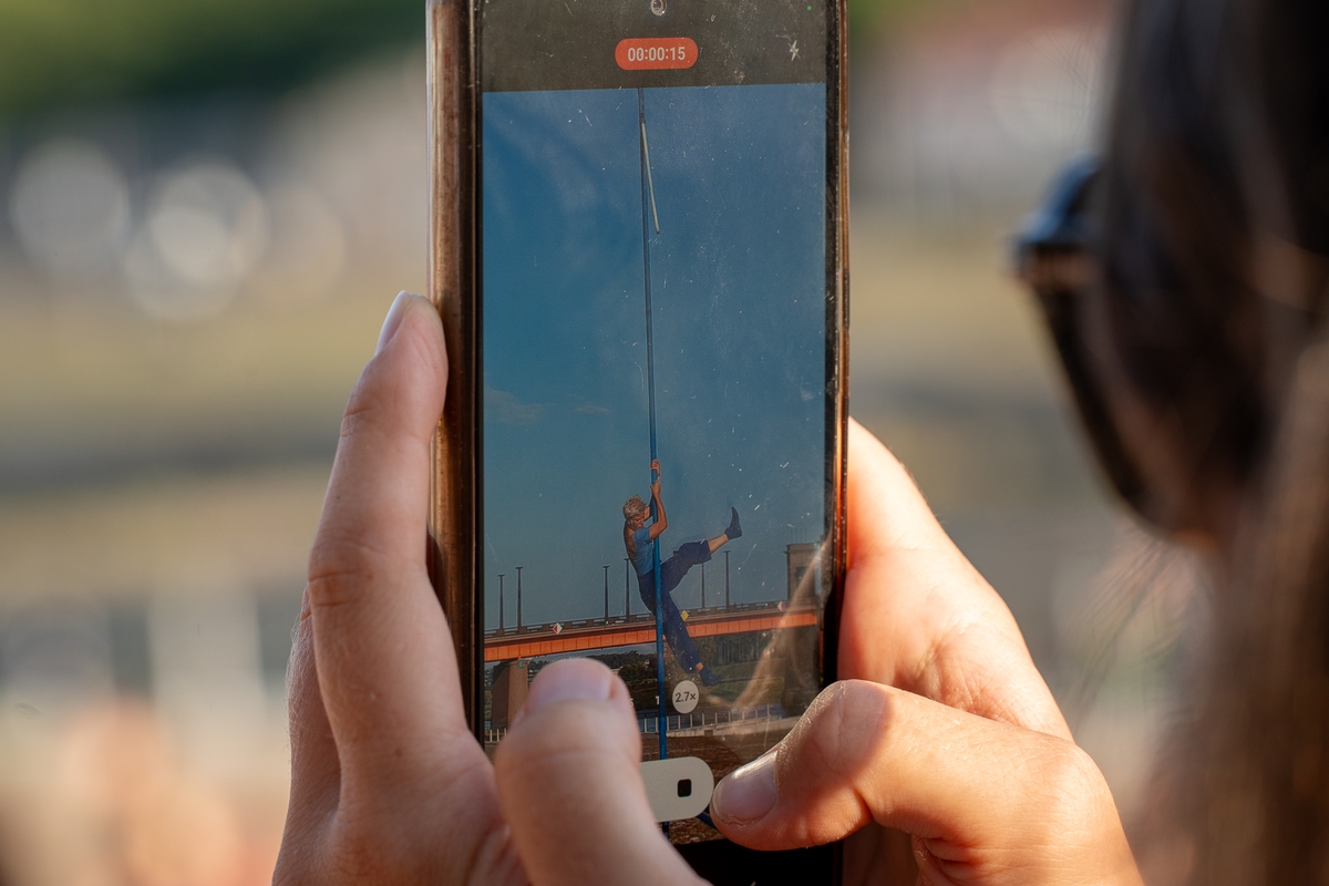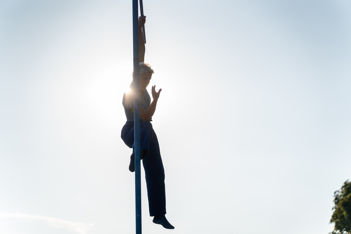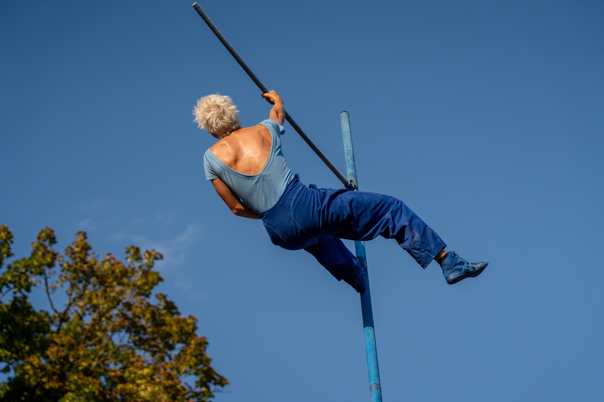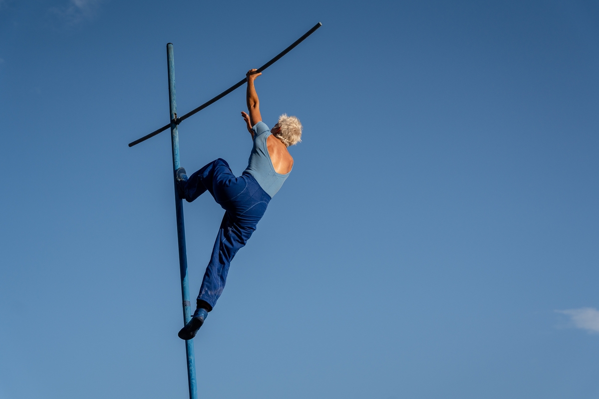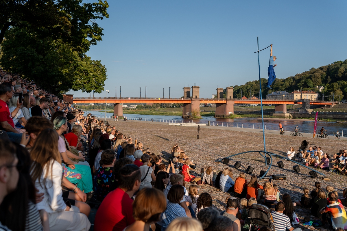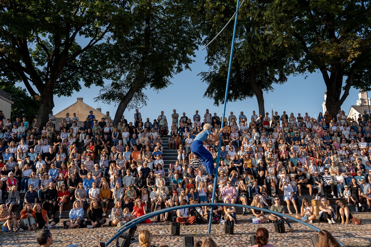Tai vieno iš festivalio renginių, kuriame artistė susirinkusiųjų dėmesį prikausto įsitaisiusi šešių metrų aukštyje virš žemės, trajektorija.