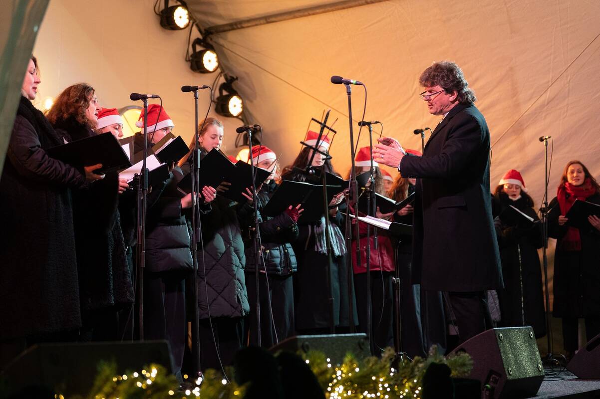 Artėjant pačioms gražiausioms metų šventėms Kaune, prie miesto žaliaskarės, skambėjo kalėdinės giesmės, kūrusios šventišką ir jaukią atmosferą.