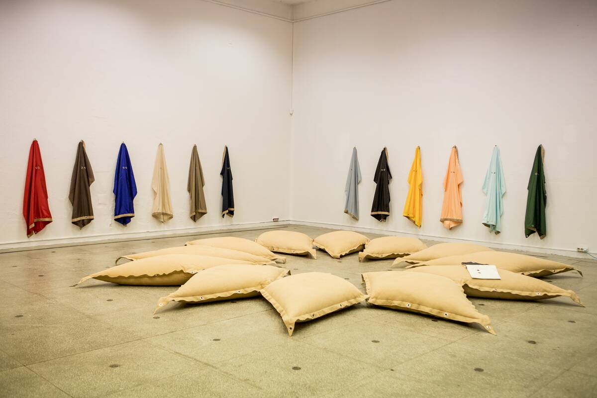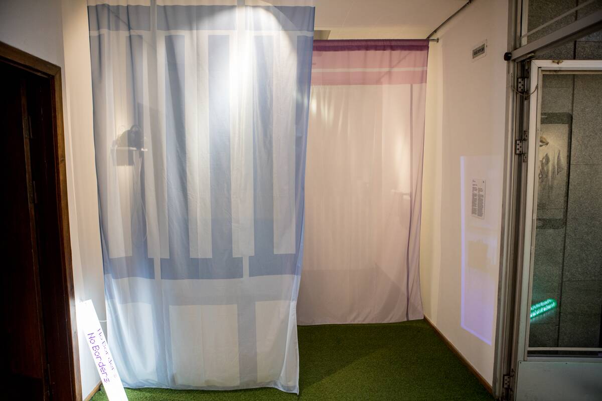 Parodoje staltiesė taip pat pakabinta taip, kad teigiami buvusių tekstilės fabrikų darbininkų prisiminimai atsidurtų paradinėje jos pusėje. Tačiau pro baltą audinį galima įžvelgti ir kitoje pusėje esančią žalią spalvą. Tai lyg kvietimas lankytojams trumpam stabtelėti ir pasinerti į šią kolektyvinę atmintį.