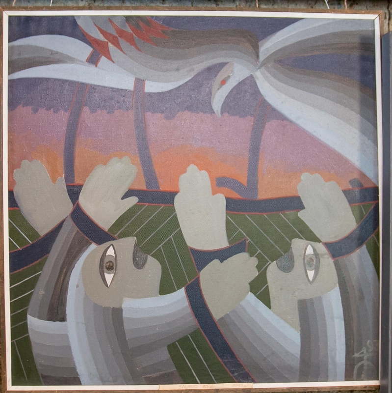 Antanas aiškino juose užkoduotą mintį, tačiau ją nesunku suprasti – paveiksluose išdavikiškai žaižaravo geltona, žalia, raudona spalvos, kartais prasiveržiančios net ir pro juodo, violetinio lagerių, tremčių siaubą.