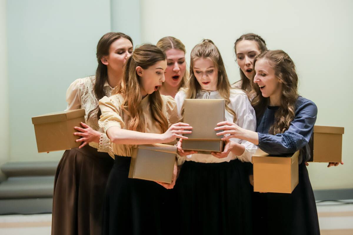 Buvo nepaprastai malonu matyti, kaip būsimosios operos žvaigždės parengė ir jaunatviška energija užpildė sceną, spėdami persikūnyti į įvairius vaidmenis, pakeisti scenografiją, po spektaklio atskubėti apkabinti profesorių (nenuostabu, juk dauguma jų – studentai) ir kruopščiai sutvarkyti rekvizitą. Žiūrėjau į juos ir tarsi mačiau jaunus kiprus petrauskus, adeles galaunienes, antanus kučingius, atsakingai ir su didžiuliu pasimėgavimu darančius viską, ko ėmėsi, ir profesorių akių šviesą ir šilumą stebint taip greitai augantį jaunimą.