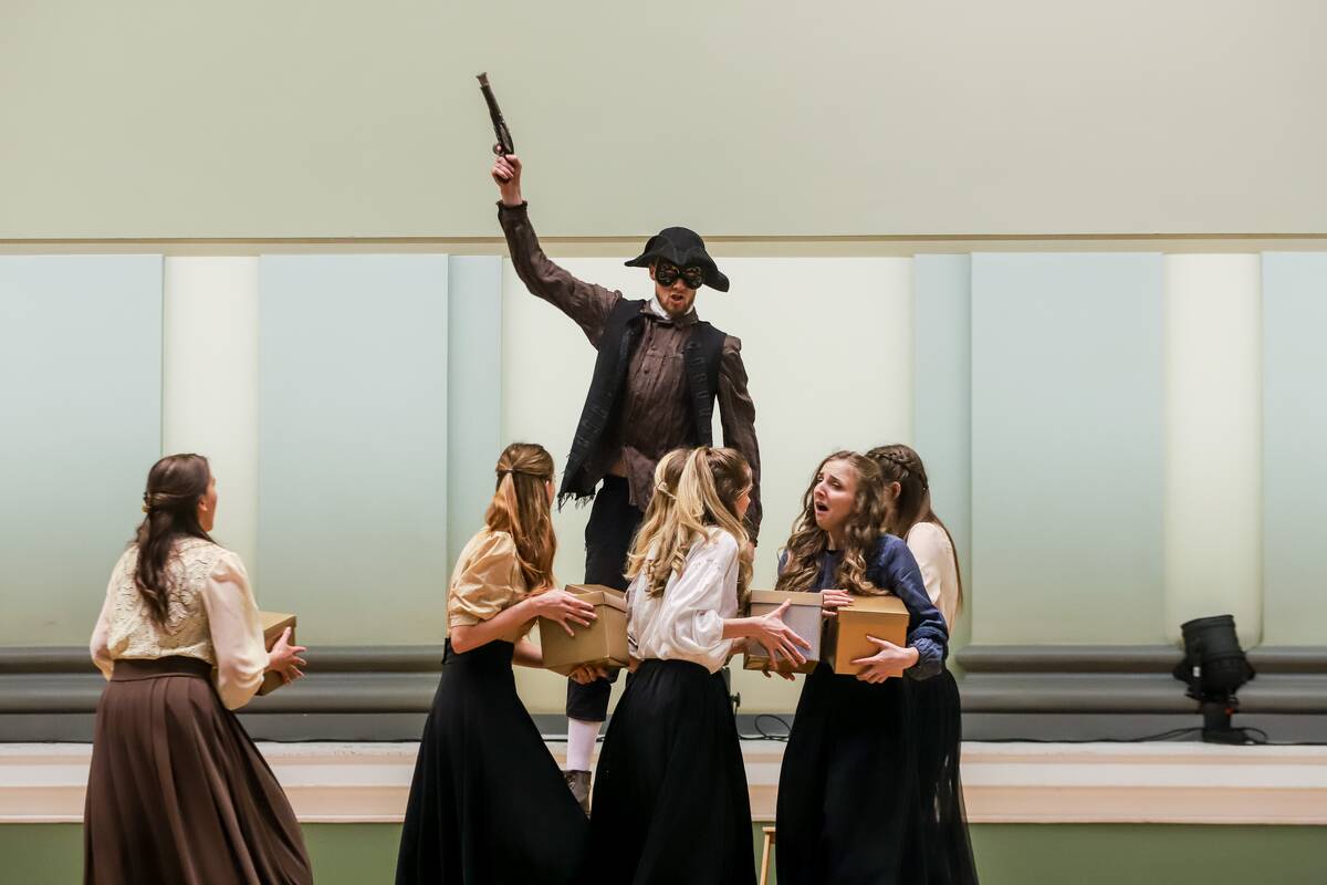 Nuotaika: Muzikos akademijos studentų energija, įsitraukimas į vaidmenis kompensavo teatro pastatymui įprastos, pasakojimo foną kuriančios scenografijos stygių. / Laimučio Brundzos nuotr.