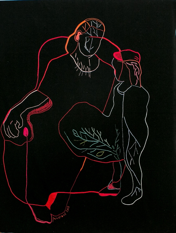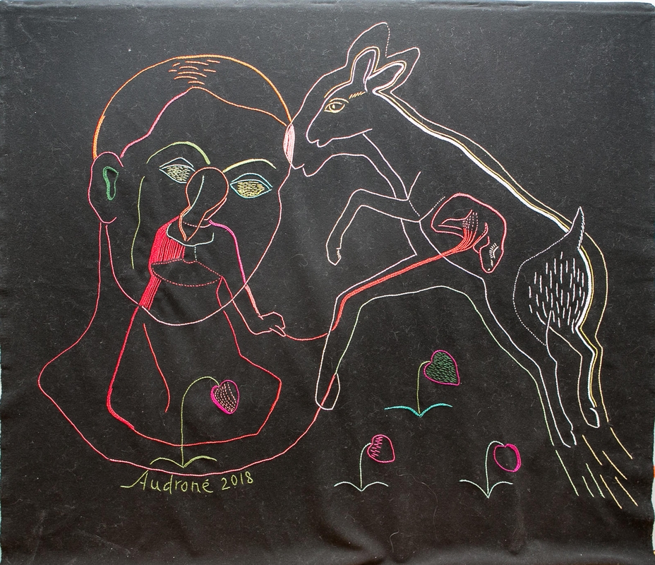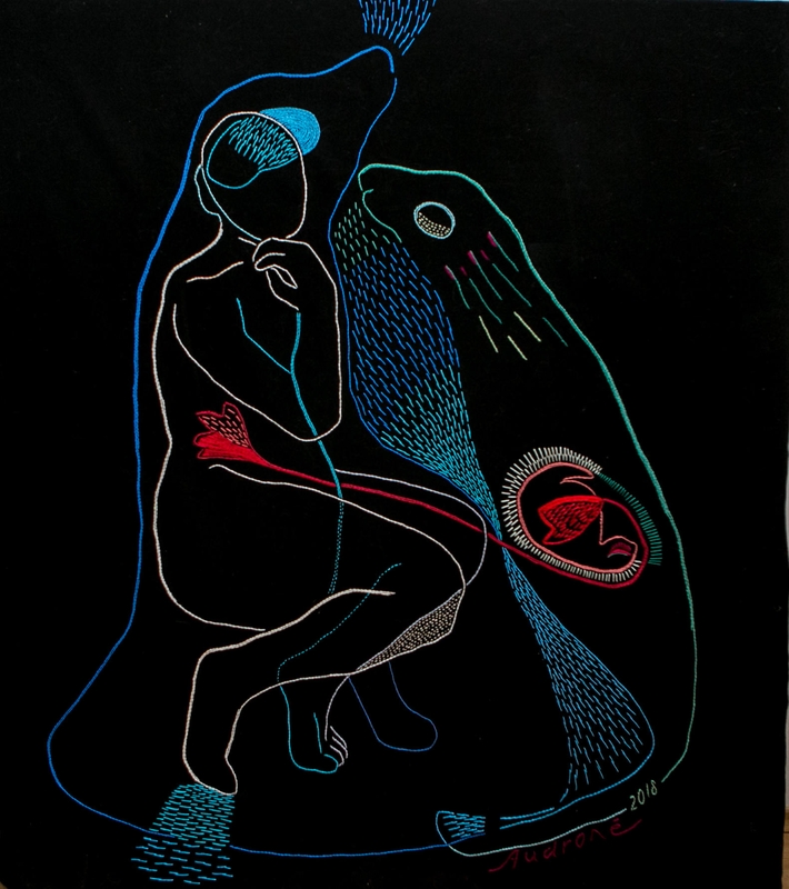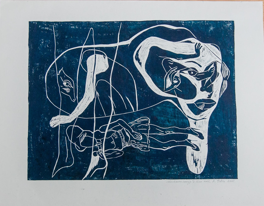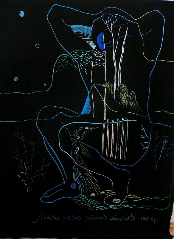 "Jie keliauja iš vienų darbų į kitus. Pavyzdžiui, motyvas su įmitusia, gera, stora stirna, kuri įšokdavo per tvorą ir apgrauždavo mano daržą – jis ir drobėje, ir kilime. O "Peršviečiamą moterį", kuri yra išsiuvinėta tekstilės kūrinyje, susapnavau. Tuo laiku buvo sunku tapyti. Sapne pamačiau ją, moterį, kuri atsitūpė ir sako: žiūrėk į mano centrą, pastebėk, kaip mano viduje viskas šviečia. Tai tapo tarsi atsakymu – atkreipti dėmesį į paveikslo centrą, ir viskas susitvarkys. Pirmiausia, ją išraižiau grafikoje, o vėliau – išsiuvinėjau", – vaizdingai pasakoja A.Petrašiūnaitė.