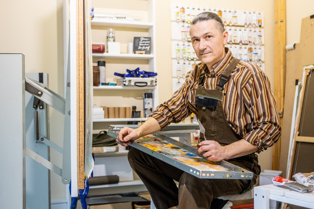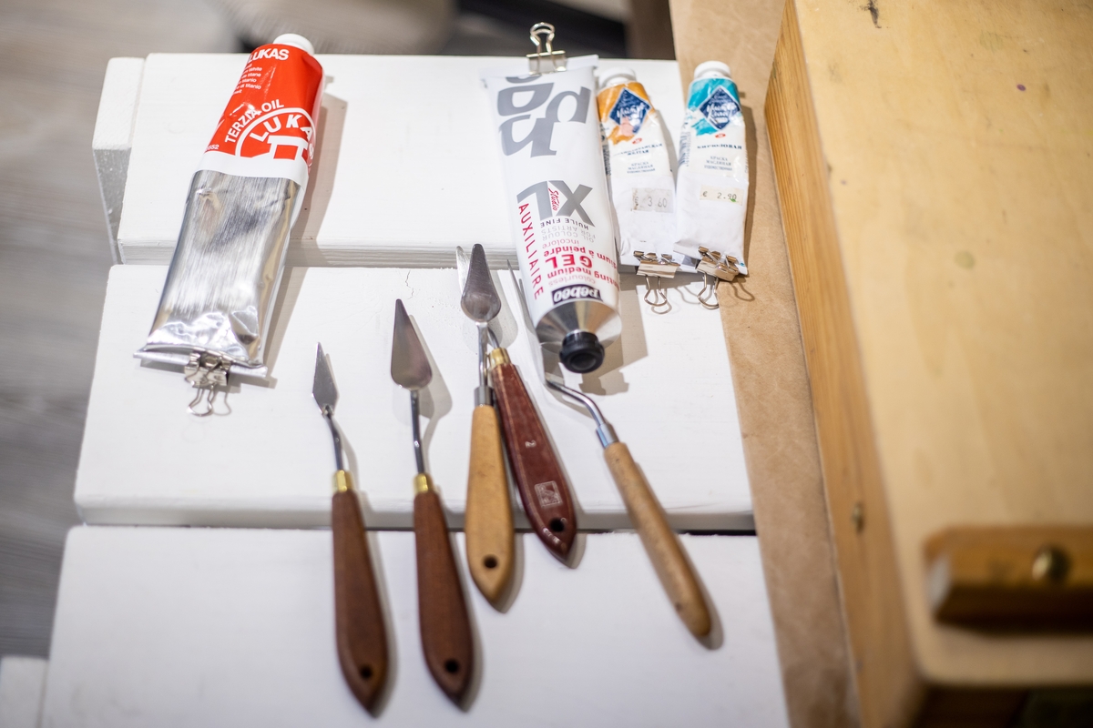 Pedantas: tapytojo studijoje, kurią įsirengė pats, viskas turi savo vietą. / Justinos Lasauskaitės nuotr.