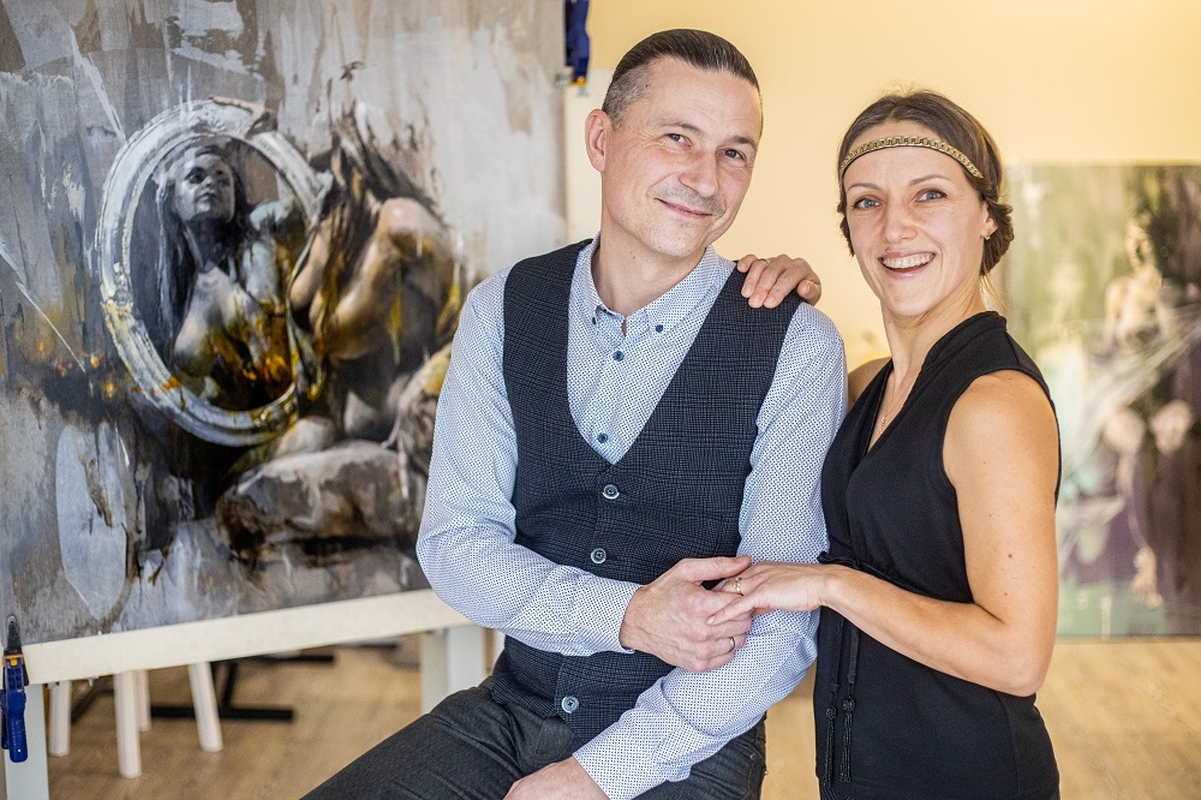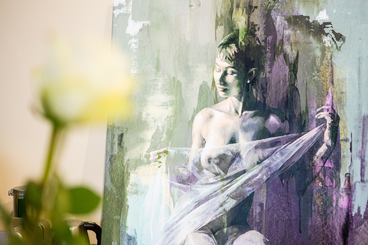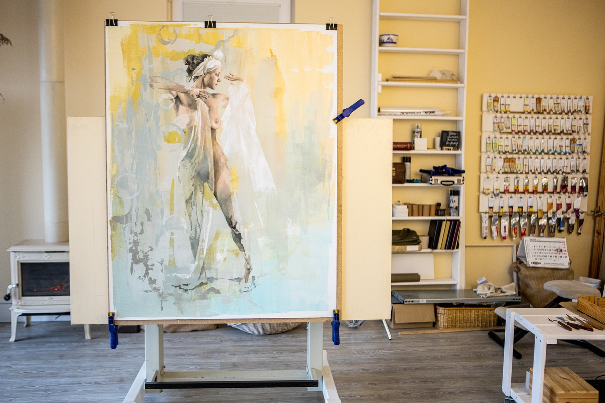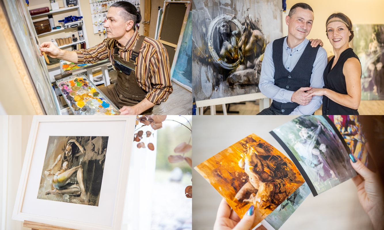 „Tai sakau nepataikaudamas. Tiesiog taip yra“, – kalbėjo tapytojas, pirmiausia ant drobės perkėlęs savo mylimos žmonos Gintarės atvaizdą. Kai jų buvo tiek daug, kad žmonės gėrėjosi ne baigtų darbų, o modelio grožiu, priešais menininką stojo kitos moterys. Šį procesą paspartino ne kas kitas, o pati Gintarė.
