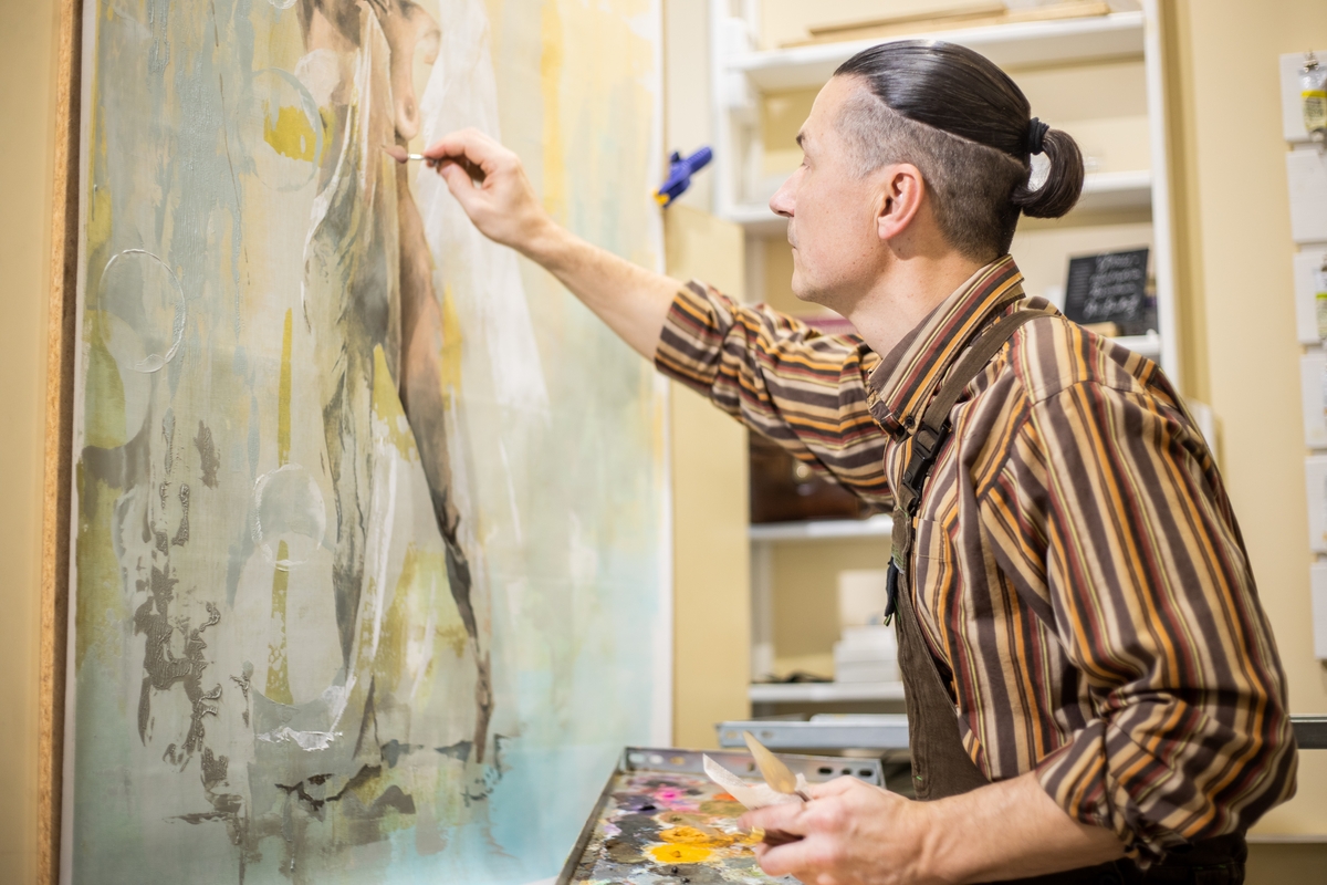 „Dirbti su modeliu – labai graži, romantiška ir prasminga forma, bet ji labai sudėtinga, nes retas modelis turėtų tiek laiko pozuoti. Be to, išaugtų darbo kaina. Todėl procese naudoju nuotraukas, – žiūrėdamas į jas kūrėjas tapo tai, ką mato, o vaizduotę jis esą išlaisvina tam tikrais momentais. – Visai neseniai sukūriau undinę. Žinoma, tai nereiškia, kad sutikau moterį su uodega. Yra tam tikrų niuansų, kuriuos keičiu, bet kūno niekada nemodifikuoju. Tikrumas, trūkumai, pranašumai – visi tie dalykai mane žavi. Daugiau kūrybos būna siužete, judesyje, nuotaikoje, bet plastikos chirurgija aš neužsiimu. Nepavaizduoti tapybos darbe galima, bet pavaizduoti ir pameluoti – ne.“