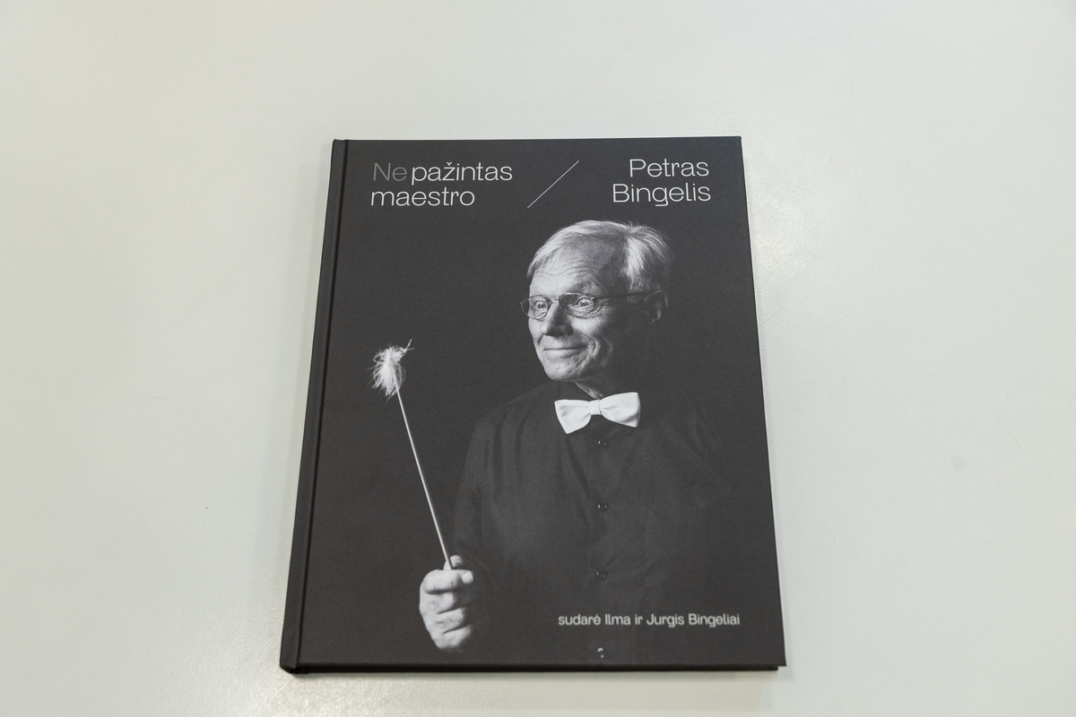 „Knyga nestandartiška, kaip ir tėvelis, su batuta lendantis nuo viršelio“, – J. Bingelio sūnaus Jurgio rankoms apglėbus leidinį, mano akys susmigo į fotografo Algimanto Aleksandravičiaus užfiksuotą akimirką – dirigentą, nuostabos kupinu veidu žvelgiantį į plunksną ant batutos. Akimirkai suglumau – tokio maestro niekada neteko matyti! Net ir tada, kai kavinukėje „Partitūra“ per dantį traukdavo eilėje lūkuriuojančius choristus, P. Bingelio lūpų kampučiai visai kitaip kildavo į viršų.