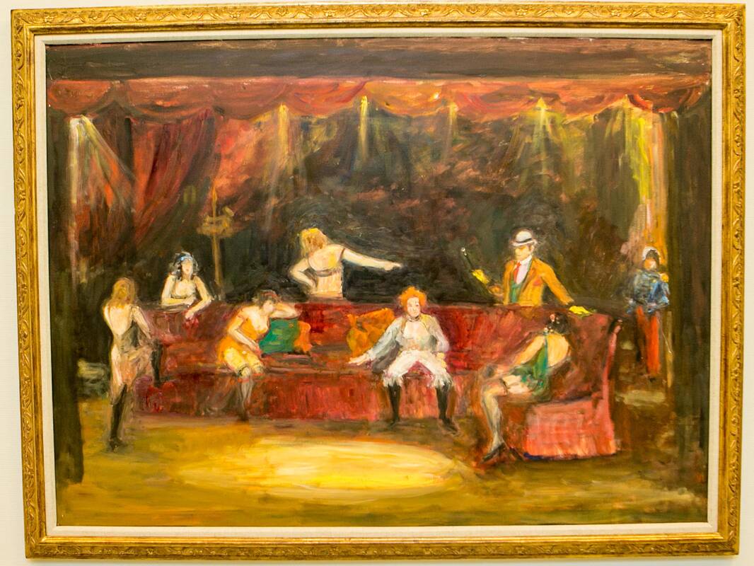 Dailininkas domėjosi ir teatru, tad pasikviesdavo nutapyti ir artistus. Būtent taip susipažino ir su savo antrąja žmona, kurios portretų, nutapytų ir jai įkūnijant sceninius personažus, ir buitinėje aplinkoje – pavyzdžiui, geriant arbatą – galima atrasti ir šiuo metu veikiančioje parodoje.