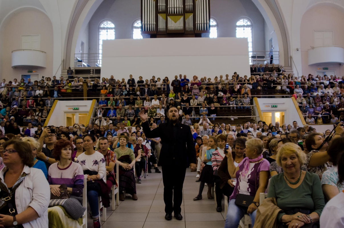 Konkursui rengėme tris programas: sakralinės, šiuolaikinės muzikos ir vokalinių ansamblių kategorijoms. Pirmoji scenoje skambėjo sakralinės muzikos programa: italų baroko epochos genijaus Antonio Lotti "Crucifixus" ("Nukryžiuotasis"), Vaclovo Augustino "Cantate Domino" ("Giedokite Viešpačiui") ir vokiečių romantiko Josefo Rheinbergerio "Abendlied" ("Vakaro daina"). A.Lotti kūrinys padalytas į aštuonias balsų partijas, nuostabiai sukomponuota barokinė faktūra, kurią atlikti su ansambliu "Acusto" buvo sena mano svajonė. Kūrinys buvo rengtas specialiai šiam konkursui, kolektyvas jį įveikė gan lengvai, puikiai atskleisdamas kompozitoriaus užkoduotą skambesio formulę. "Abendlied" – itin sudėtinga chorinė partitūra, kuri dėl ypač ilgų muzikinių frazių ir nenutrūkstančios tėkmės nelengvai įkandama net patyrusiems chorams. Kūrinys ansamblio repertuare gyvuoja jau senokai, bet jį teko tarsi atgaivinti, reabilituoti, ir tai išties pavyko – už šią giesmę pelnėme specialųjį komisijos prizą. V.Augustino kūrinys skirtas dviem chorams. Šis sumanymas leido pagyvinti pasirodymą konkurse, nes ansamblis prieš kiekvieną kūrinį keitė išsidėstymą scenoje, taip demonstruodamas ne tik gebėjimą girdėti kolegas iš įvairių pozicijų, bet ir suskambėdamas naujais potėpiais, šiuo atveju – dvigubo choro antifona, t.y. dialogu tarp dviejų ansamblio narių grupių.