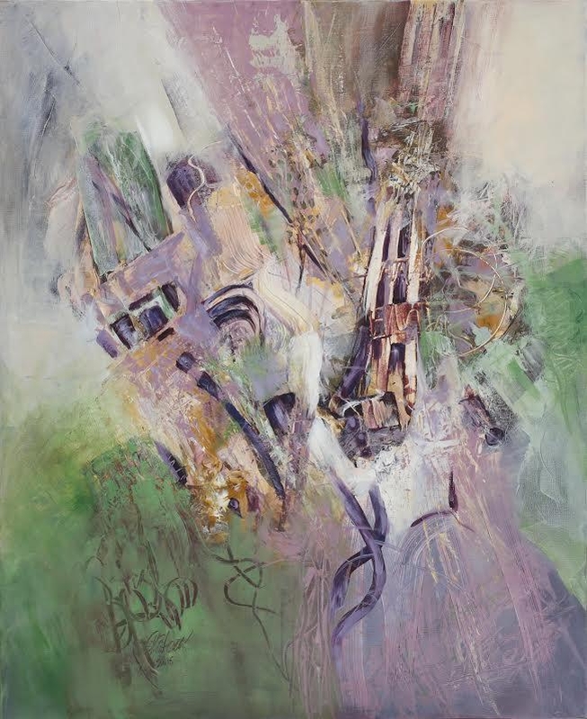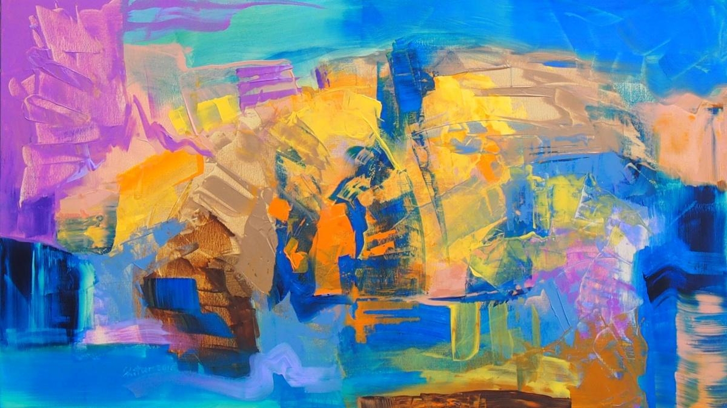 Erdvios, plačios spalvinės gamos abstrakcijos, tapytos keliais sluoksniais, turbūt ieškant gelmės, vengiant plokštumo, trivialaus įspūdžio. Šį pastebėjimą ypač sustiprina "Saulės pieva", kurioje nutapytos dvi atsivėrusios skylės – metafizinės ertmės (išėjimai) į Kitą pasaulį.