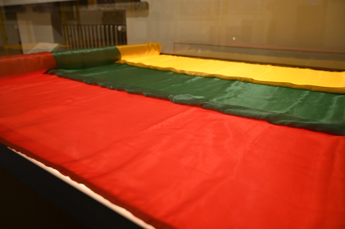 Dar vienas unikalus eksponatas – Lietuvos trispalvė, kuri Sąjūdžio mitingo metu 1988 m. spalio 9 d. buvo iškelta Karo muziejaus bokšte. Šią trispalvę išsaugojo vienas Kauno sąjūdininkas ir vėliau perdavė saugoti Kauno miesto muziejui, o muziejus ją paskolino mums parodai.