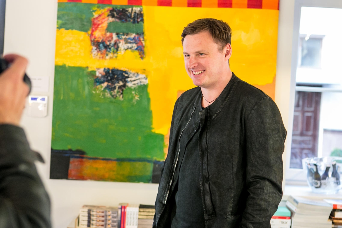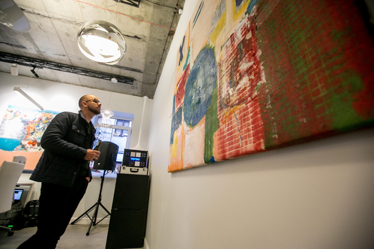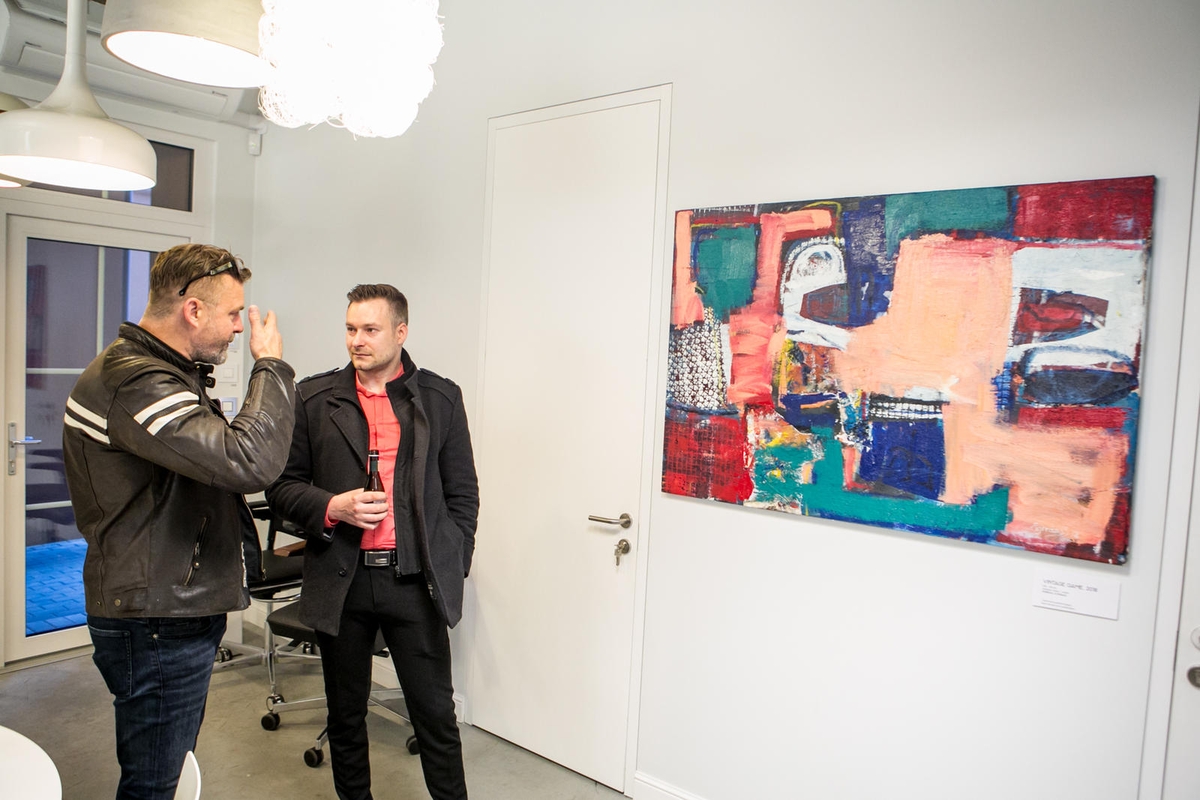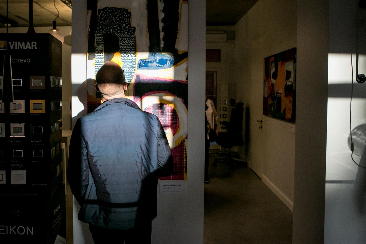 Salono erdvėje menininko darbai ne tik kabo ant sienų. Kai kurie jų, paįvairinant ekspoziciją ir atkreipiant žiūrovo dėmesį, atremti į sienas. Tai paskatina prieiti arčiau, patyrinėti. Dalis ekspozicijos kūrinių, kaip buvo apibūdinta pakvietime į parodą: "analogo neturintys naujos kartos paveikslai ant metalo plokščių". Pastarieji įdomūs tuo, kad gali labai lengvai keliauti po erdvę, transformuoti ją suteikiant meniškos netvarkos ir iš savo vietų išjudinant taisyklingas, griežtas interjero konstrukcijas.